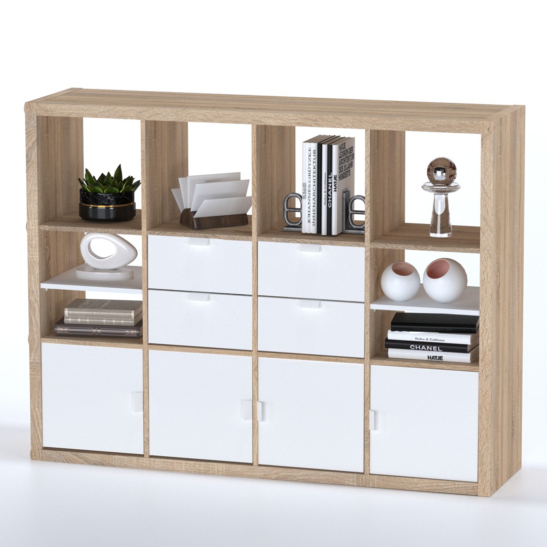• Комплектующие имеют эстетичный внешний вид с обратной стороны что позволяет поставить стеллаж по середине комнаты.