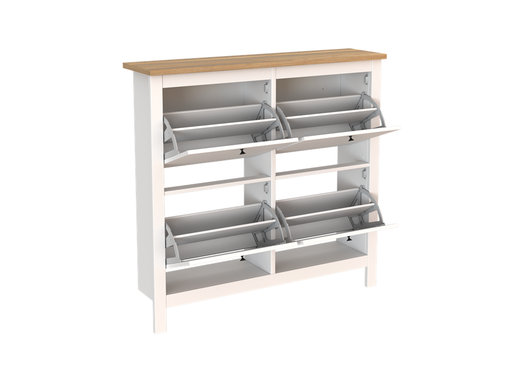 САГА тумба для обуви 113х108 — элегантность и качество в каждой детали! Серия САГА вдохновлена популярной серией HEMNES от IKEA, и станет идеальным дополнением вашей квартиры. Тумба для обуви САГА — это стильное и функциональное решение для хранения, которое идеально впишется в любой интерьер, будь то прихожая, гардеробная или даже балкон. Ее продуманный дизайн и удобные особенности делают ее незаменимым помощником в организации порядка. Главная особенность тумбы — четыре откидывающихся полки, на которых можно с комфортом разместить до двенадцати пар обуви. Это позволяет легко доставать и убирать обувь, сохраняя ее в идеальном состоянии. Тумба оснащена надежным магнитными фиксаторами, которые обеспечивают безопасность и предотвращает случайное падение полки. Вы можете быть уверены, что обувь останется на своем месте. Не верхнюю полку можно поставить декор или кинуть связку ключей, что очень удобно в прихожей. Несколько тумб можно разместить в ряд, создавая стильное и практичное горизонтальное решение для хранения обуви. Это отличный вариант для больших семей или любителей обуви. Тумба отличается компактными размерами, что делает ее идеальной для небольших пространств. При этом она легко вписывается в различные стили интерьера — от современного до классического. Тумба для обуви САГА — это не просто место для хранения, а стильный и функциональный элемент вашего интерьера. Она поможет поддерживать порядок, сэкономит пространство и станет удобным решением для хранения вашей обуви. Дополните свою прихожую или гардеробную этой тумбой и наслаждайтесь идеальной организацией!