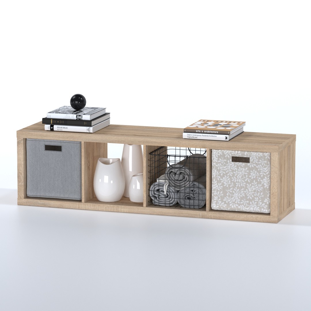 Материал: ДСП (полки и перегородки — 15 мм), бумага с пигментом (поверхность), тамбурат (рамка из ДСП и HDF с сотовым заполнением).