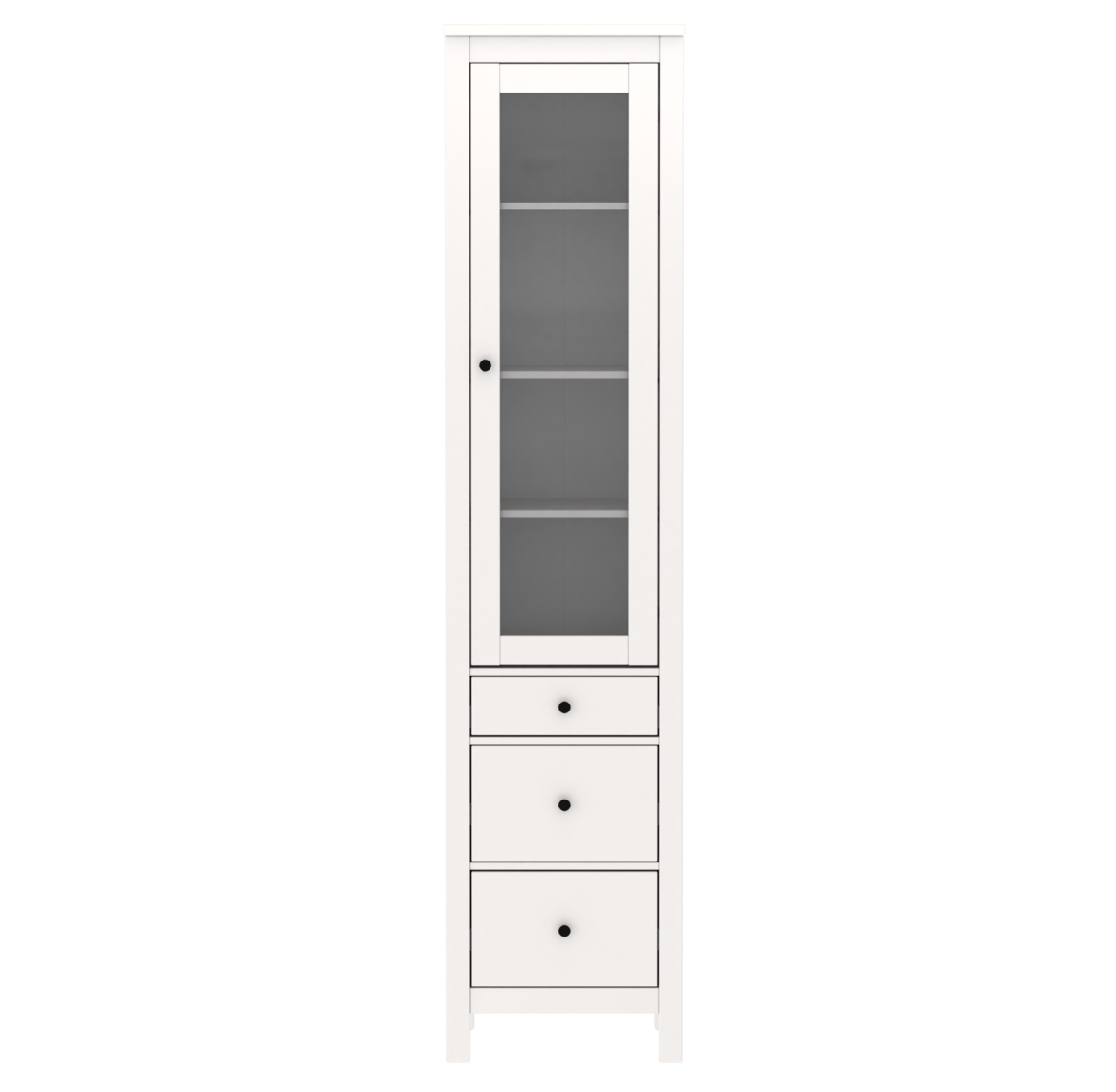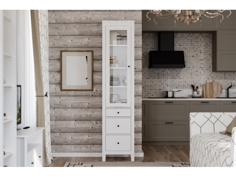 Серия мебели САГА вдохновлена популярной серией HEMNES в традиционном стиле от IKEA, и станет идеальным дополнением вашей квартиры. Шкаф с витриной (ширина 50 см) САГА , 496х414х2155. Серия мебели "Сага", выполнена в скандинавском стиле, лаконична и функциональна. Плавно закрывающиеся двери и ящики обеспечивают комфорт.