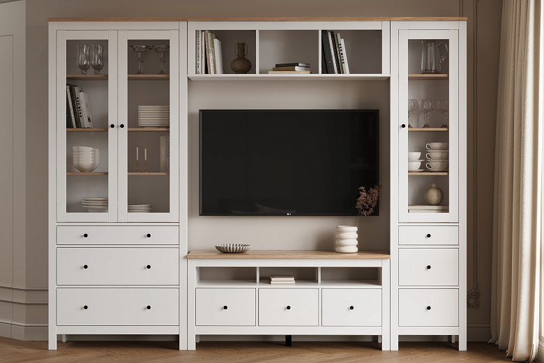 - Стеклянные дверцы: Позволяют продемонстрировать вашу любимую посуду, книги или предметы декора.