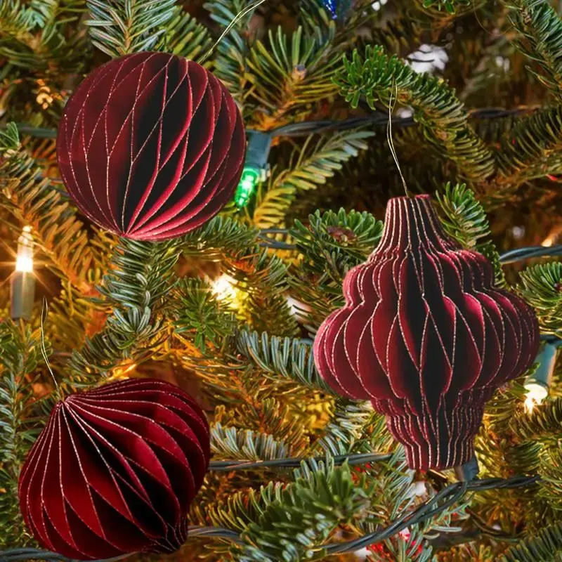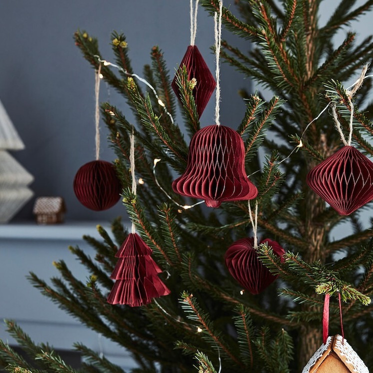 В наборе 6 игрушек из плотной бумаги размером по 5см каждая. Все украшения имеют разную форму.