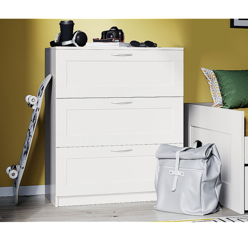 Комод СИРИУС, 3 ящика — элегантность и качество в каждой детали! Серия мебели СИРИУС вдохновлена популярной серией BRIMNES от IKEA, и станет идеальным дополнением вашей квартиры. Лаконичный дизайн комодов гармонично впишется в любой интерьер, а компактные размеры не займут много места. Комод СИРИУС — универсальный комод небольшого размера, который позволяет организовать хранение всех необходимых вещей — в верхние необходимые мелочи, чтобы были всегда под рукой, в других — подушек, одеял, белья или одежды, ведь благодаря глубине и максимальной нагрузке 8 кг они подходят для любых целей. А на столешнице комода можно поставить все, от рамок и ваз до аквариума – ведь максимальная нагрузка на нее целых 15 кг! Компактный размер позволяет разместить его в небольших пространствах.