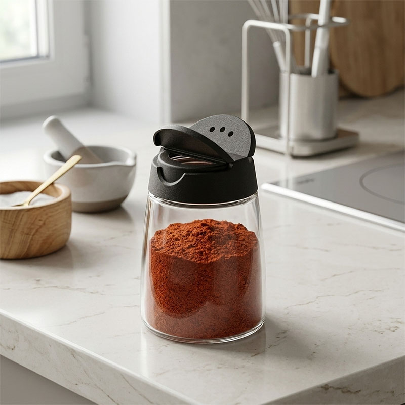 Крышка имеет два дозатора - для минимального и максимального добавления специй в блюдо.