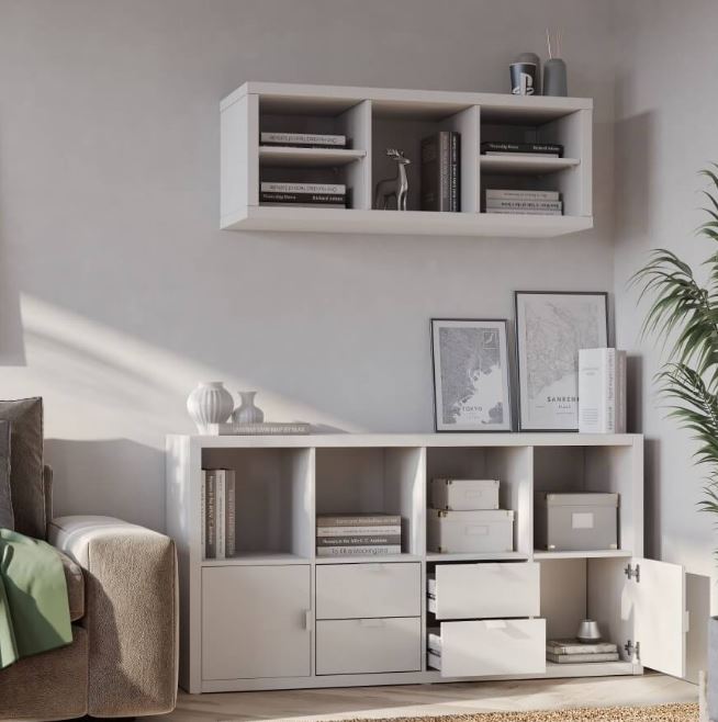 • Комплектующие имеют эстетичный внешний вид с обратной стороны, что позволяет ставить стеллажи по середине комнаты.