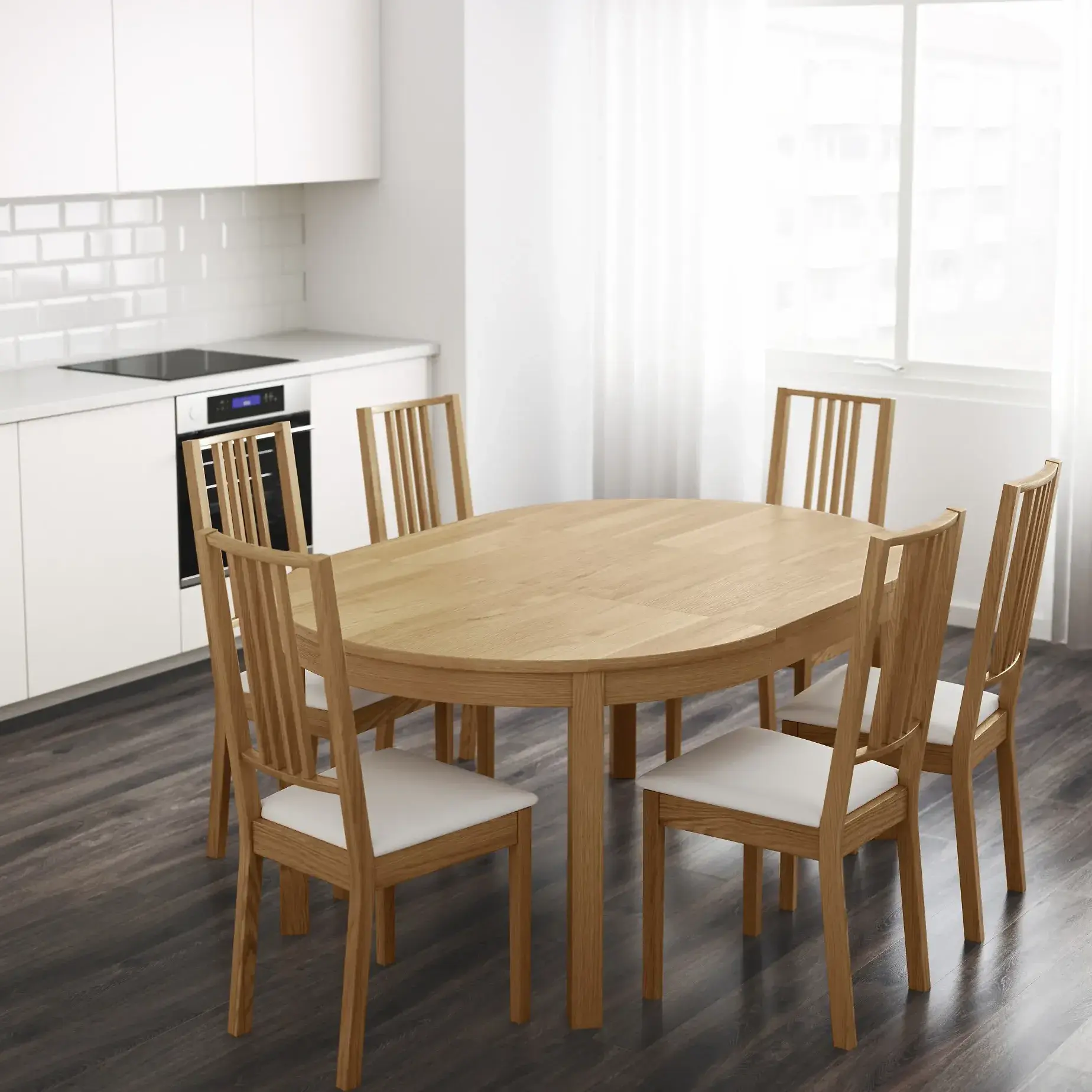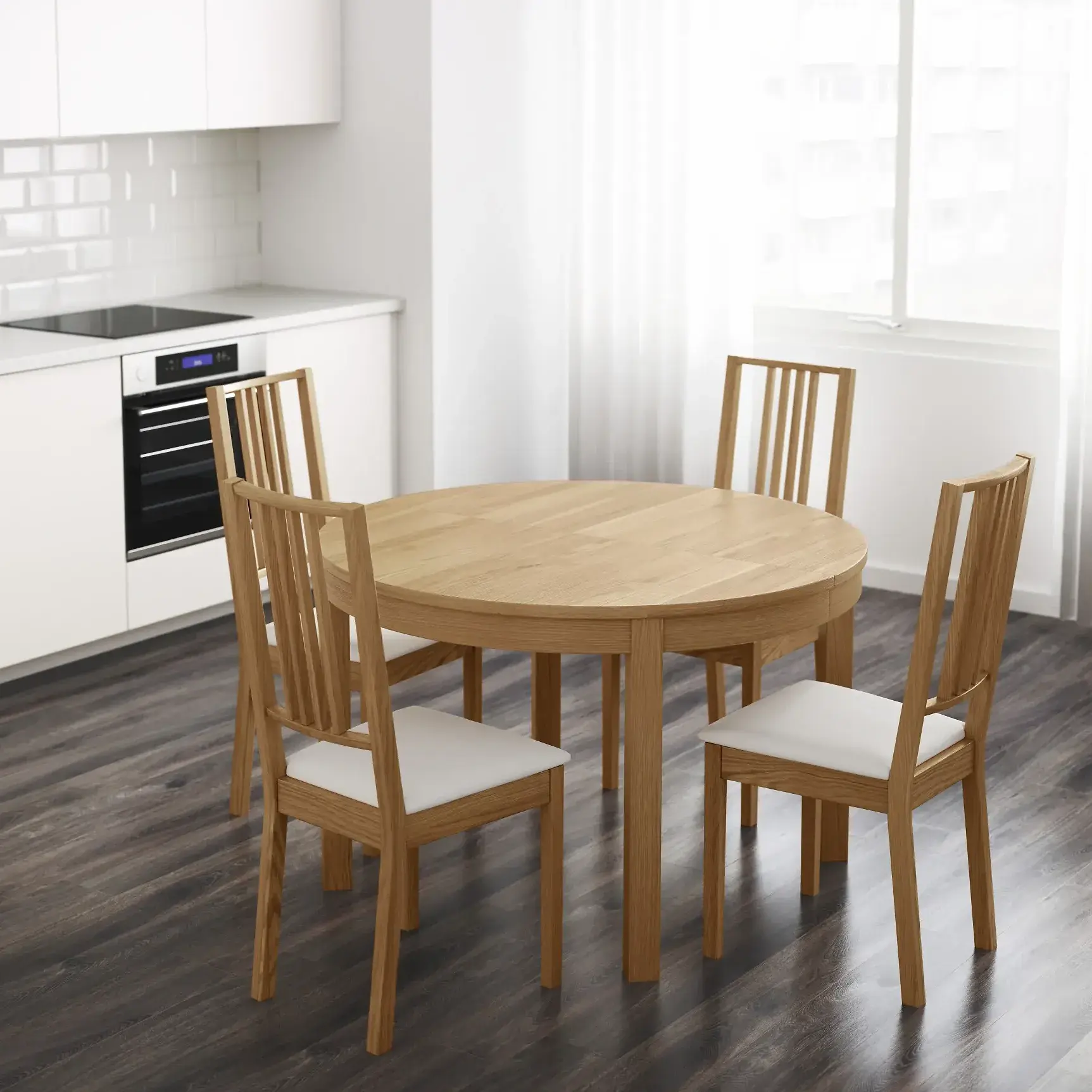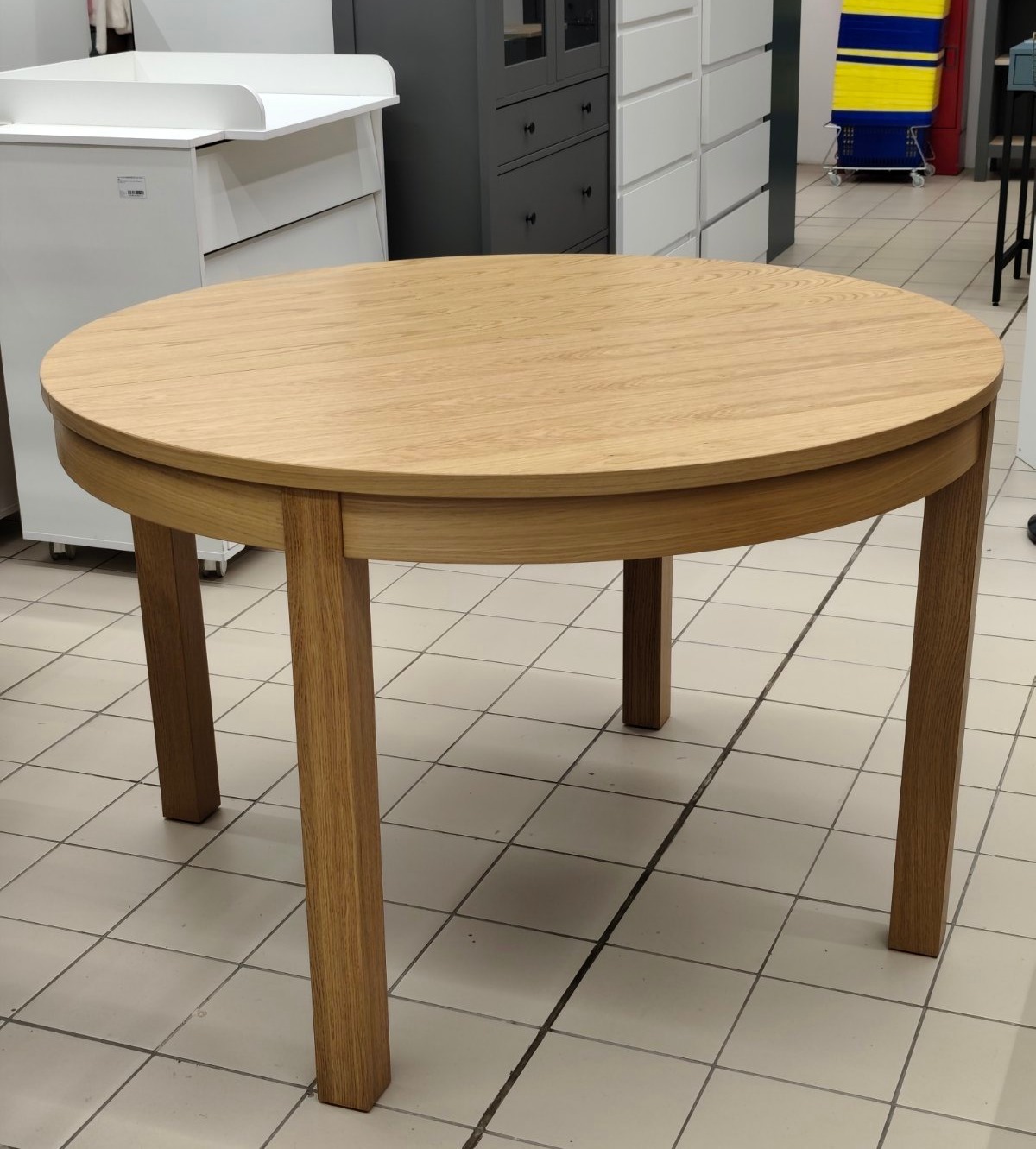 Одна вкладная доска прилагается. Раскладной обеденный стол на 4-6 человек. Одна вкладная доска позволяет регулировать размер стола. Вкладную доску удобно хранить под столешницей. Функция защелкивания; дополнительная столешница плотно задвигается. Поверхность, покрытая прозрачным лаком, проста в уходе.