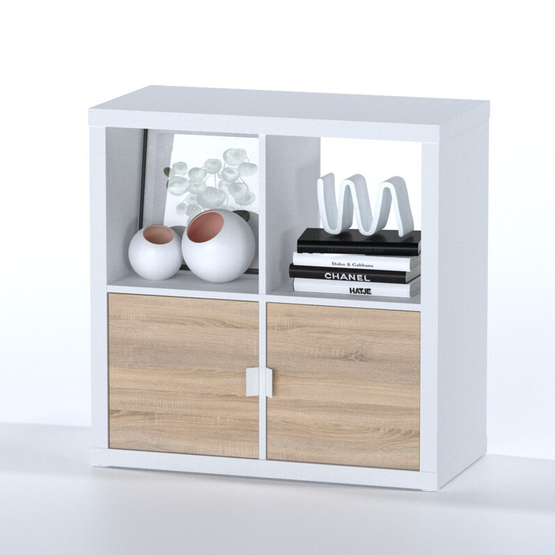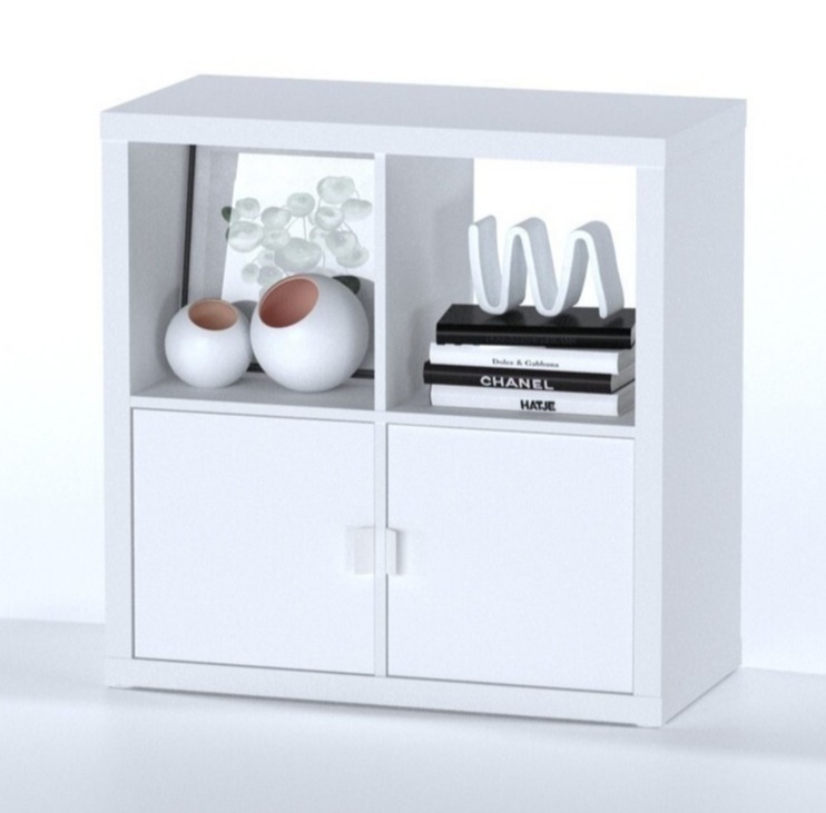 • Стеллаж может быть открыт или за счет дополнительных комплектующих: дверца, полка, и два ящика, закрыт как тумба.
