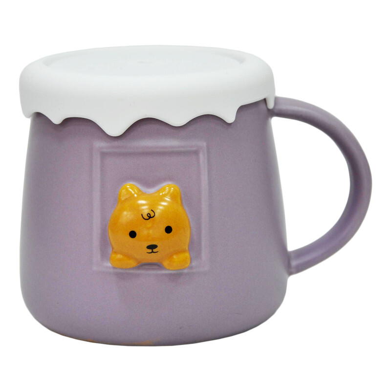 Керамическая кружка с крышкой, фиолетовый, 400 мл