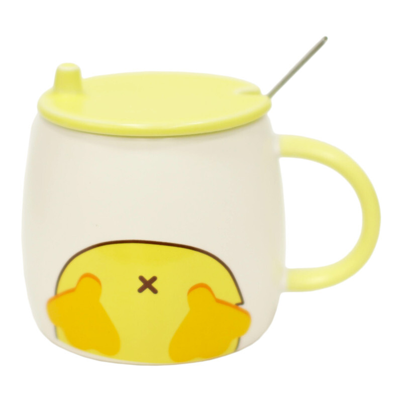 Керамическая кружка с крышкой и ложкой, белый, 420 мл