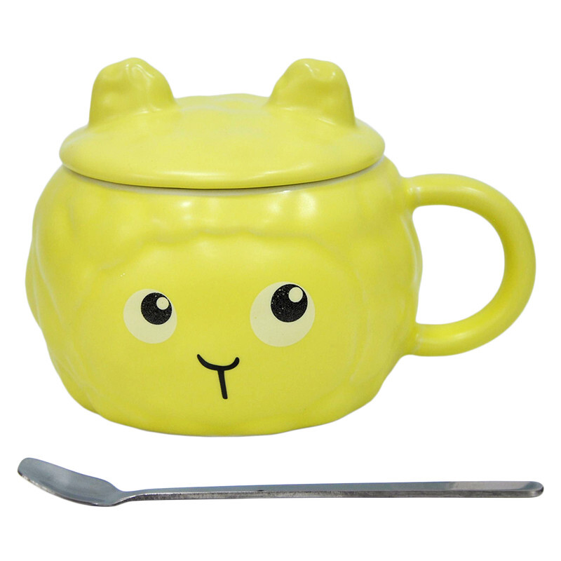 Керамическая кружка с крышкой и ложкой, желтый, 370 мл