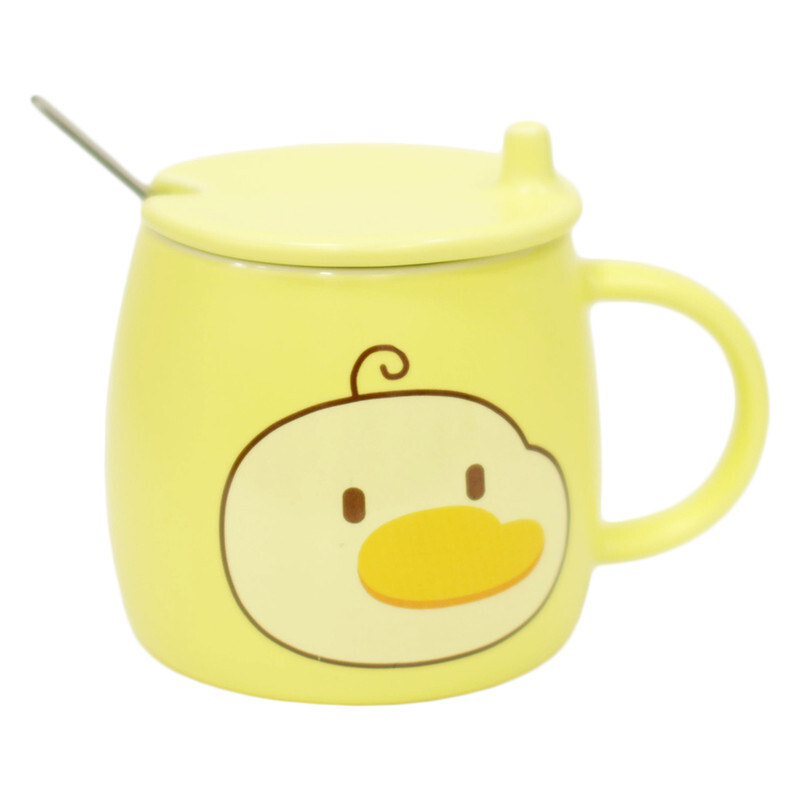 Керамическая кружка с крышкой и ложкой, желтый, 420 мл