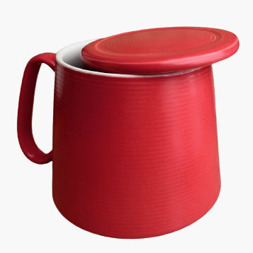 В комплект входит кружка, керамическое сито и крышка.