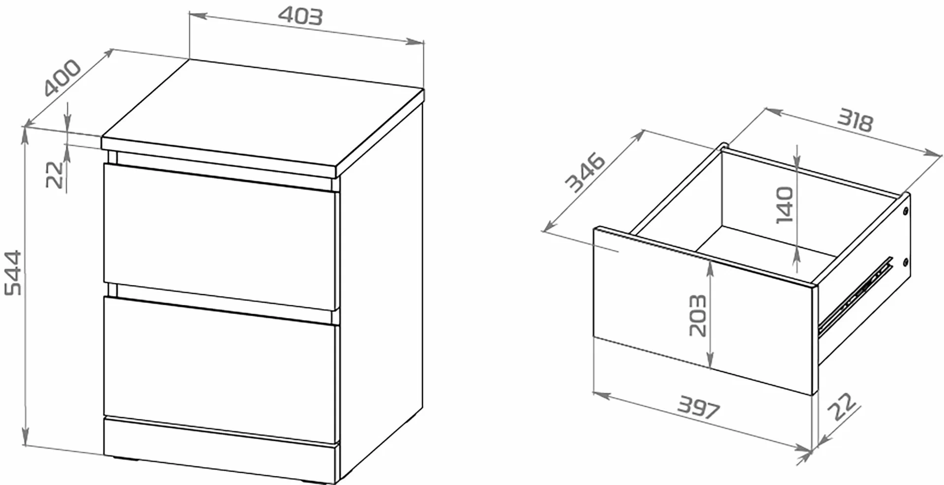 - Шариковые направляющие обеспечивают плавное и бесшумное выдвижение ящика.