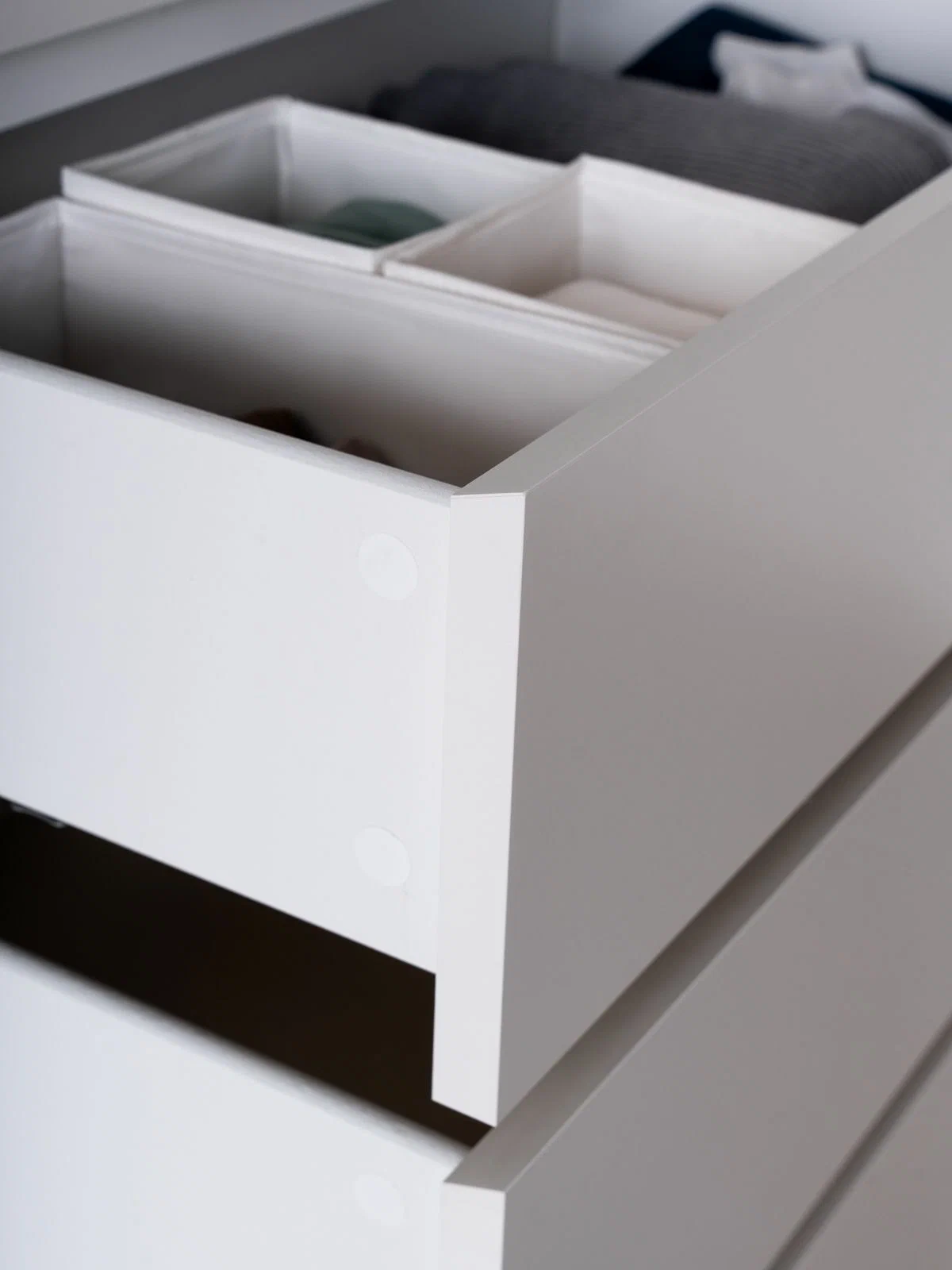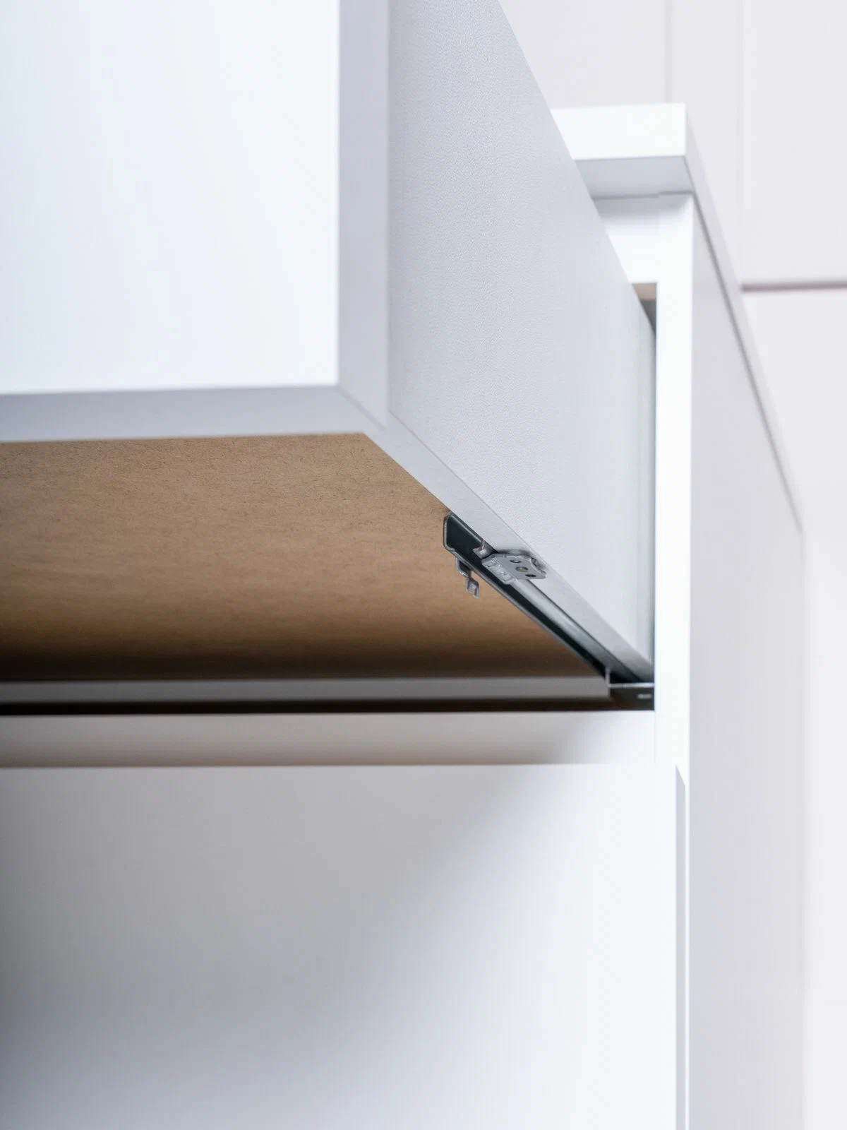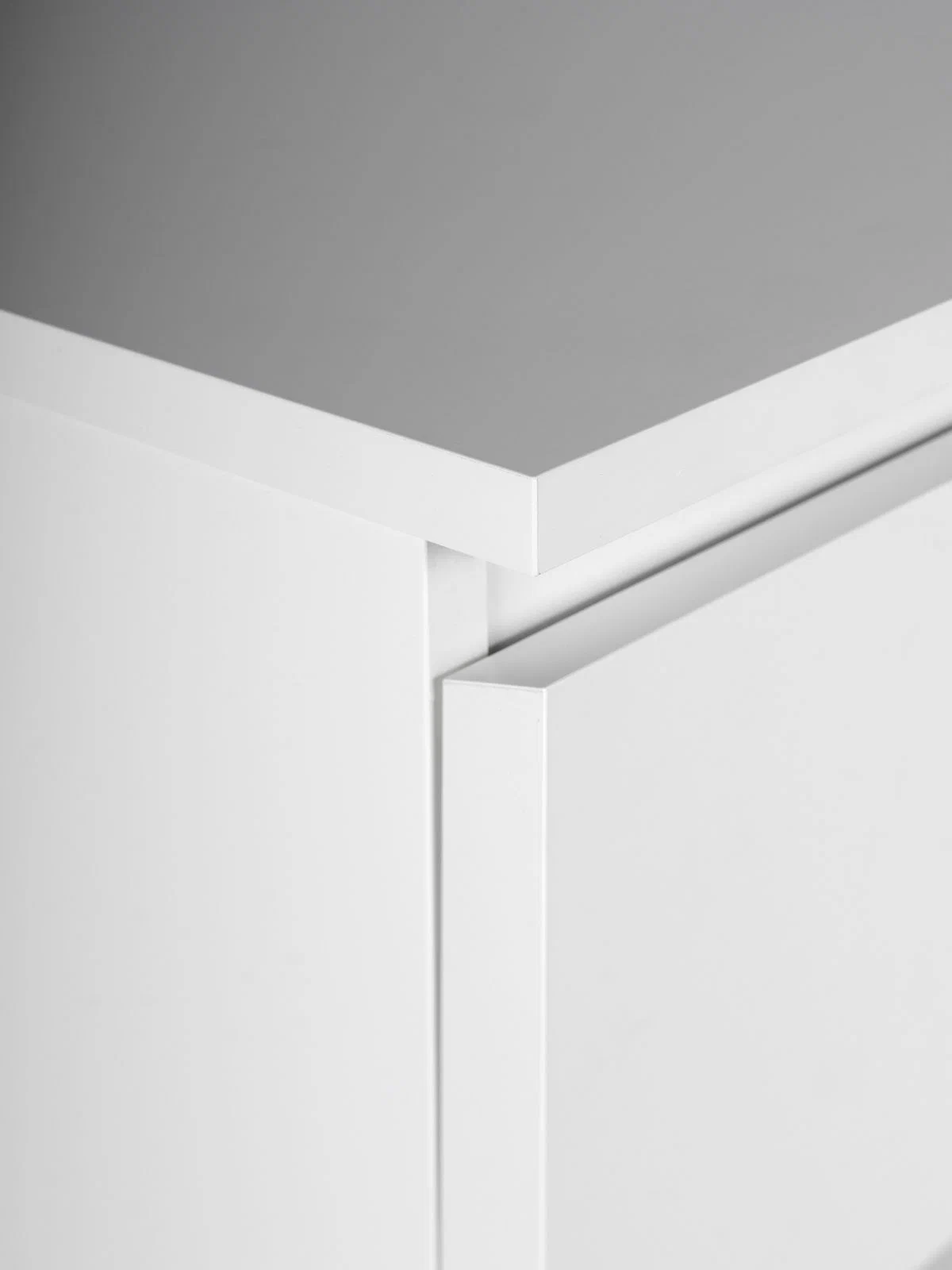 • Направляющие скрытого монтажа с доводчиками: Комод оснащен современными направляющими скрытого монтажа, которые обеспечивают плавное и бесшумное выдвижение ящиков. Доводчики гарантируют мягкое закрытие, предотвращая случайные удары и повреждения.