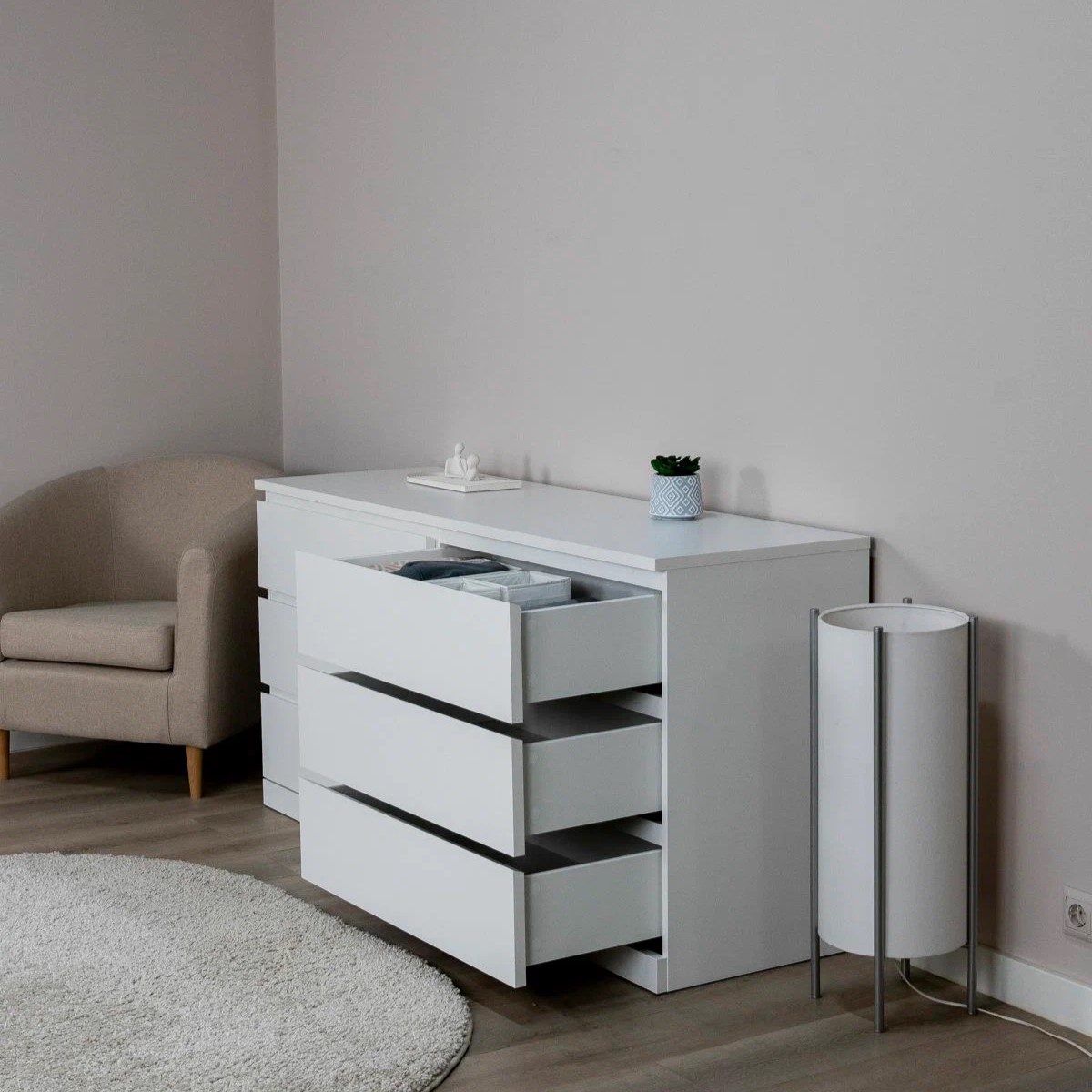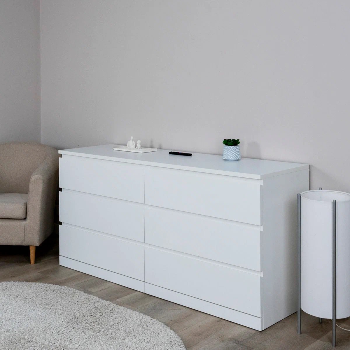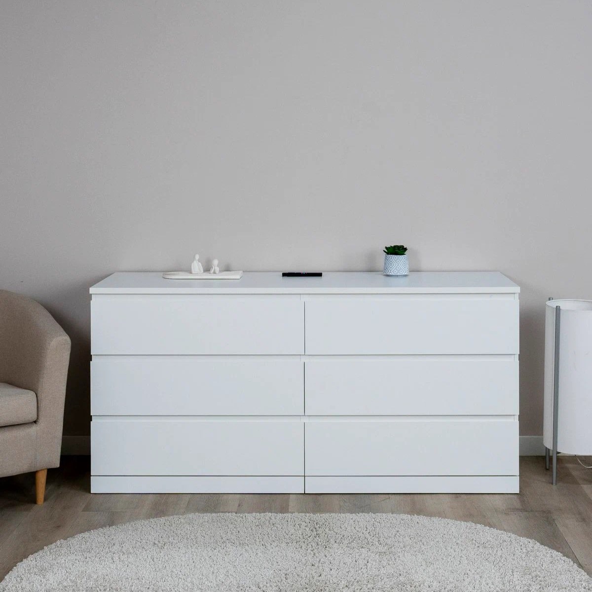 Комод Варма 6Д - это стиль и функциональность, собранные в одном решении. Благодаря пигментной технологии окраски он выглядит дорого и современно, а экологичные материалы делают его безопасным для дома и семьи. Шесть плавно выдвижных ящиков обеспечивают удобное хранение, а универсальный дизайн позволяет использовать комод в спальне, гостиной или детской — вплоть до роли ТВ‑тумбы. Он легко комбинируется с любым интерьером, быстро собирается и без труда регулируется. Варма 6Д - надежный, практичный и эстетичный выбор для тех, кто ценит качество и комфорт в каждом элементе дома.