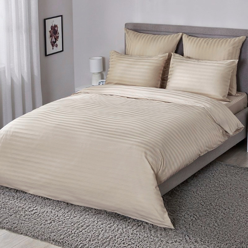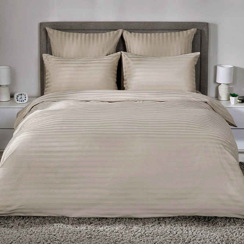 Страйп-сатин - это жаккардовая ткань, плетение которой представляет собой чередование блестящих и матовых полос, отсюда и название "страйп". За богатую фактуру и блеск постельное белье из этого материала относят к элитарным, ткань мягкая, приятная к телу и прочная - не деформируется спустя сотни циклов стирок.