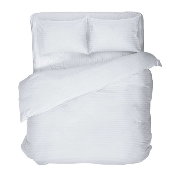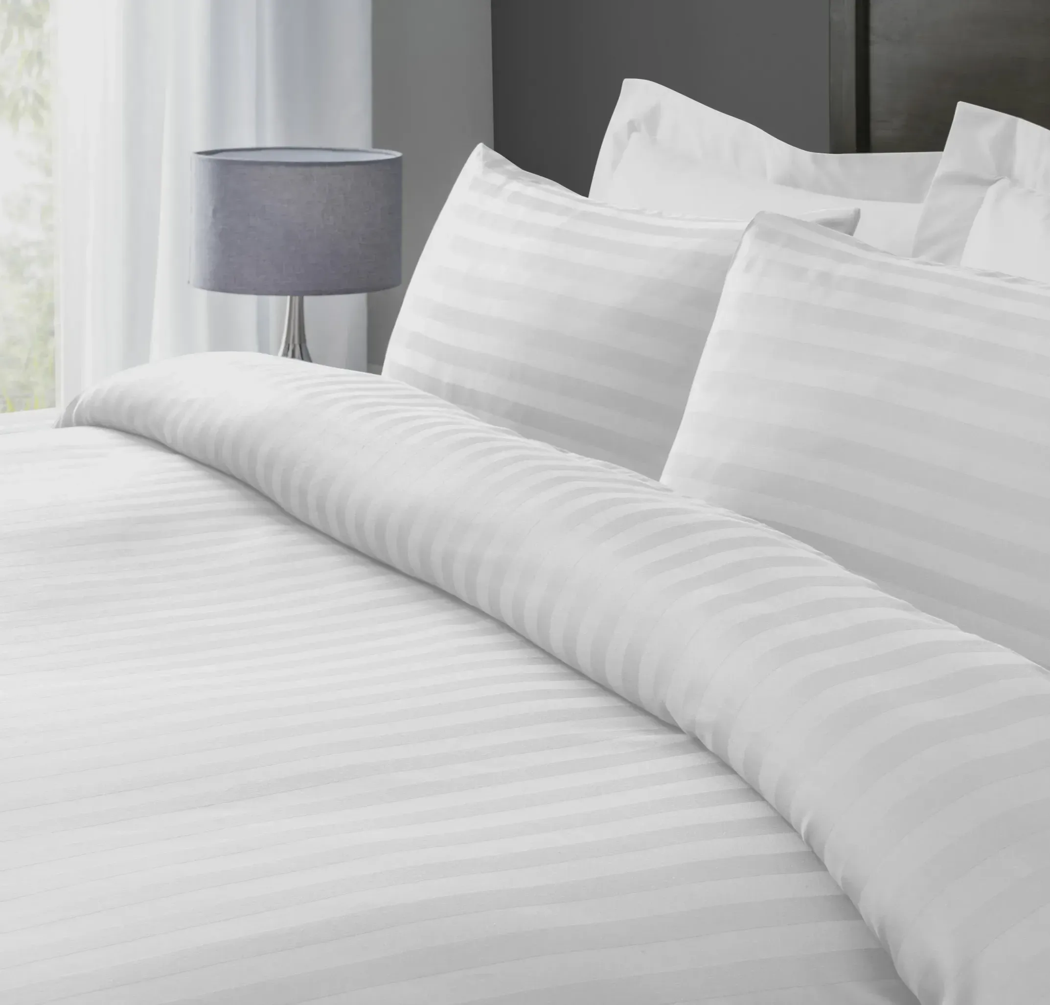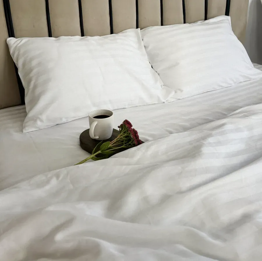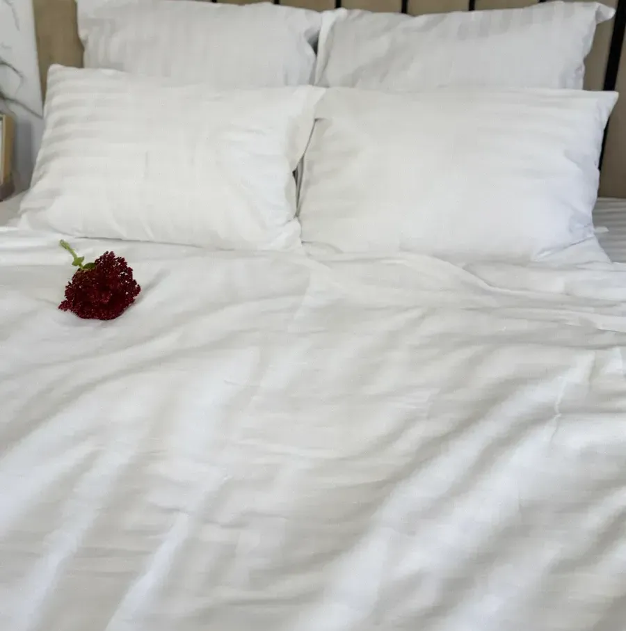 Страйп-сатин - это жаккардовая ткань, плетение которой представляет собой чередование блестящих и матовых полос, отсюда и название "страйп". За богатую фактуру и блеск постельное белье из этого материала относят к элитарным, ткань мягкая, приятная к телу и прочная - не деформируется спустя сотни циклов стирок.