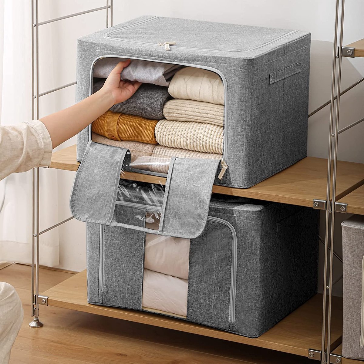 Вместительная коробка для хранения одежды, игрушек и аксессуаров. Легко выдвигать и поднимать благодаря ручкам.
