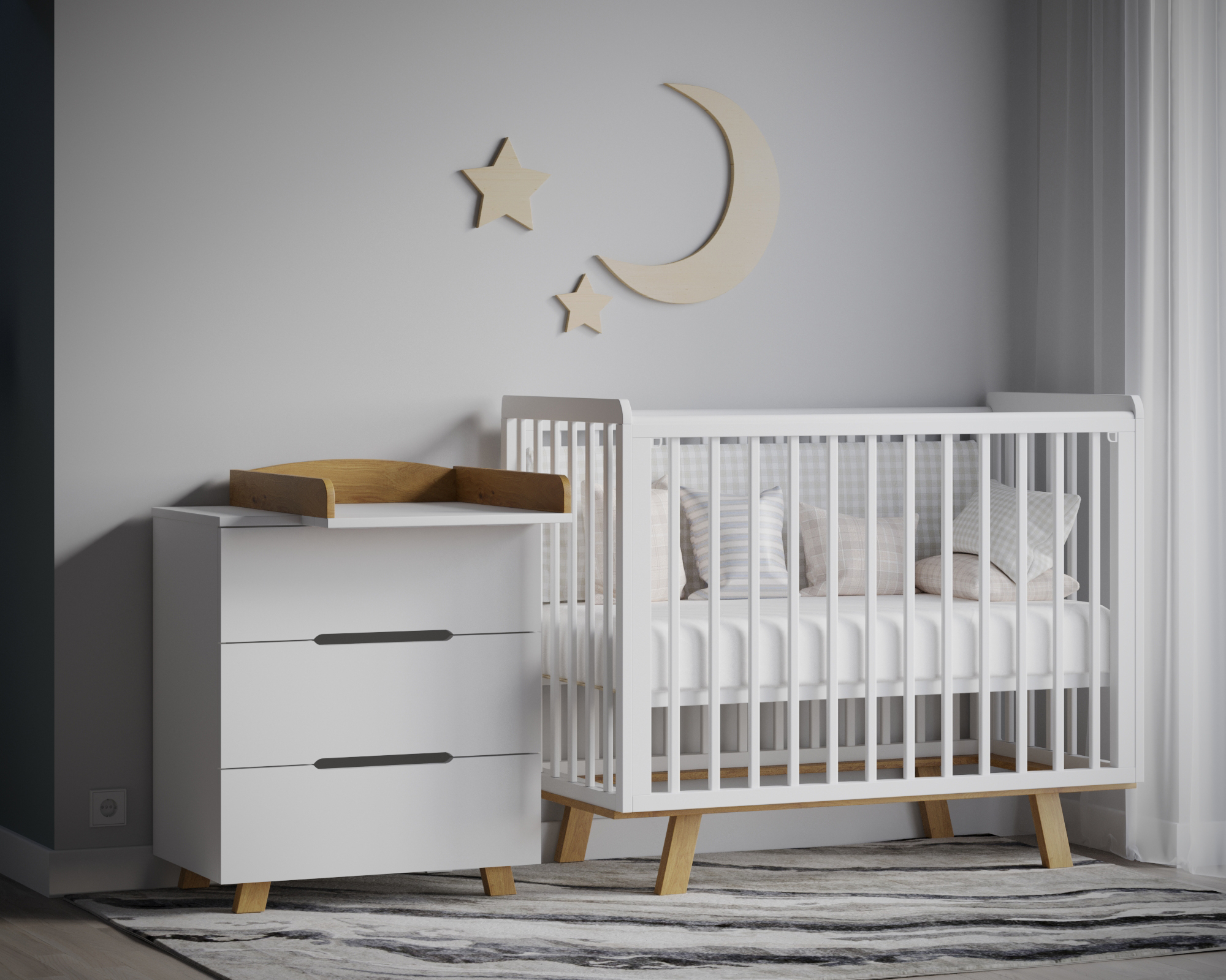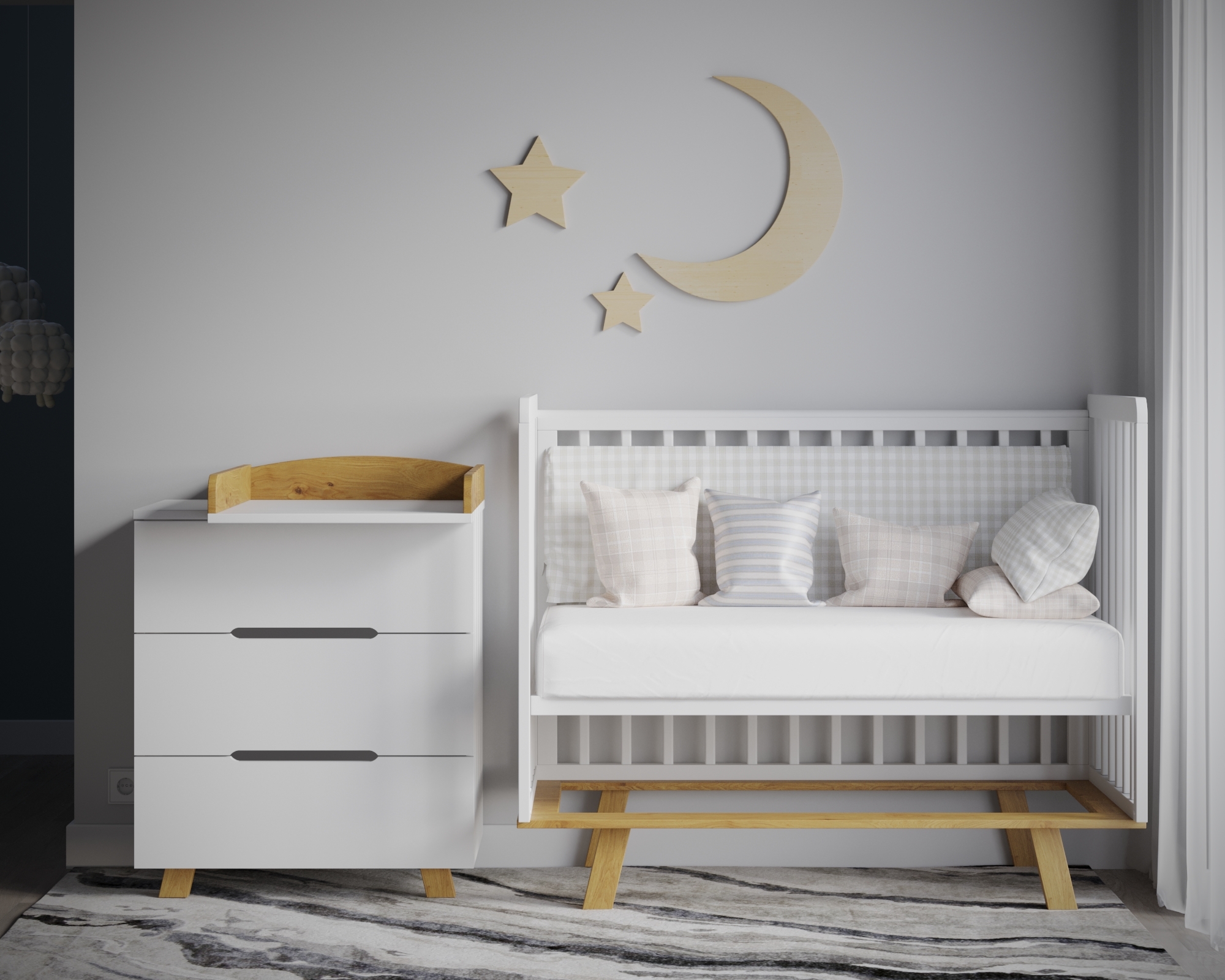Верхние планки оснащены силиконовыми накладками, чтобы малыш не повредил первые зубки и поверхность кроватки.