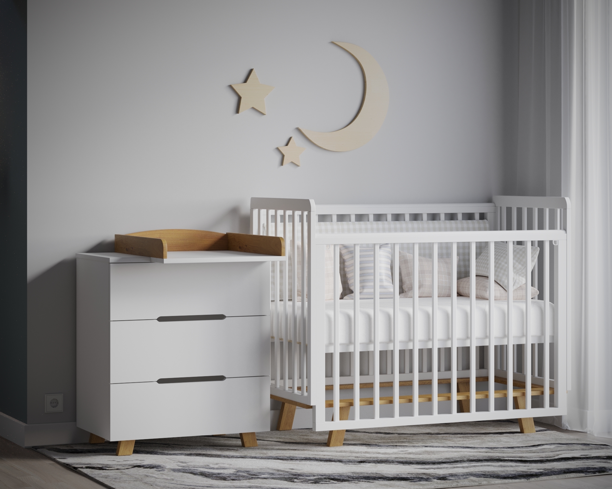 Стенки и дно кроватки - реечные, что создает естественную вентиляцию матраса и спального места крохи.