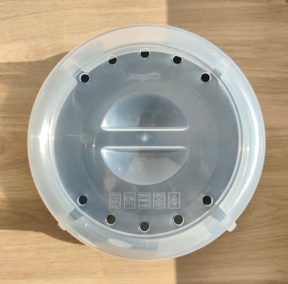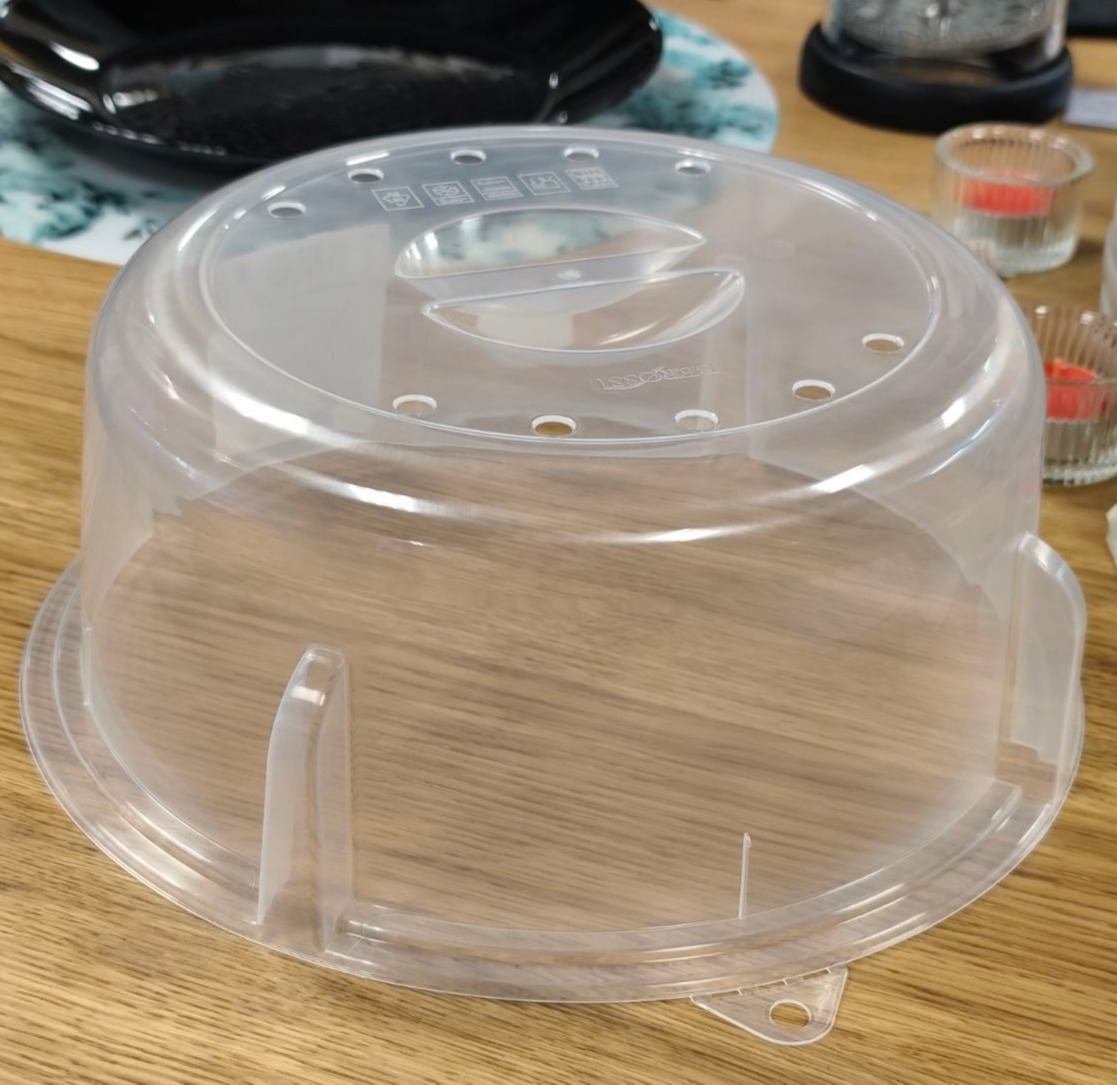 Крышка для СВЧ сделана из качественного пищевого пластика. Такое изделие подойдет для микроволновых печей различных моделей. Легкая, удобная. Пригодна для мытья в посудомоечной машине. Благодаря полупрозрачной поверхности Вы получаете возможность следить за процессом разогрева. Специально предусмотренные отверстия обеспечивают выпуск пара.