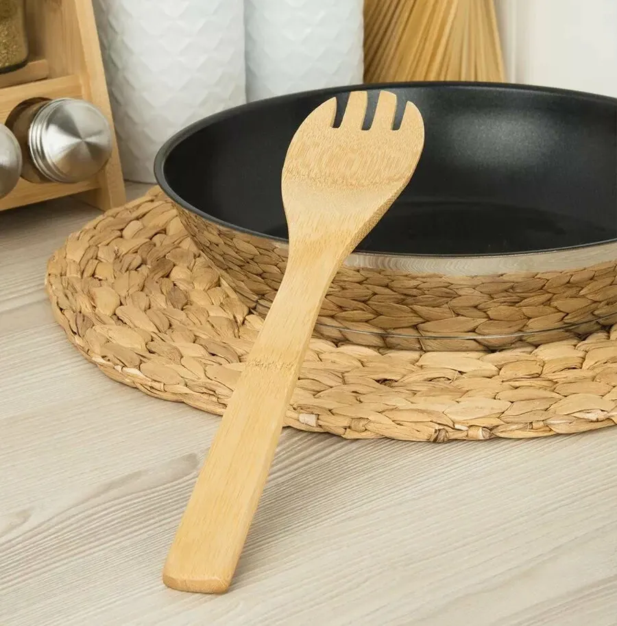 Кухонная лопатка Koudum из экологичного бамбука — ваш надежный помощник на кухне! Длина 30 см обеспечивает удобство использования даже крупных кастрюль и сковородок. Прочные бортики легко поднимают и переворачивают продукты без повреждений. Безопасно для антипригарных покрытий, удобна для перемешивания салата! Эргономичная ручка удобно лежит в руке, предотвращая скольжение и усталость при готовке.