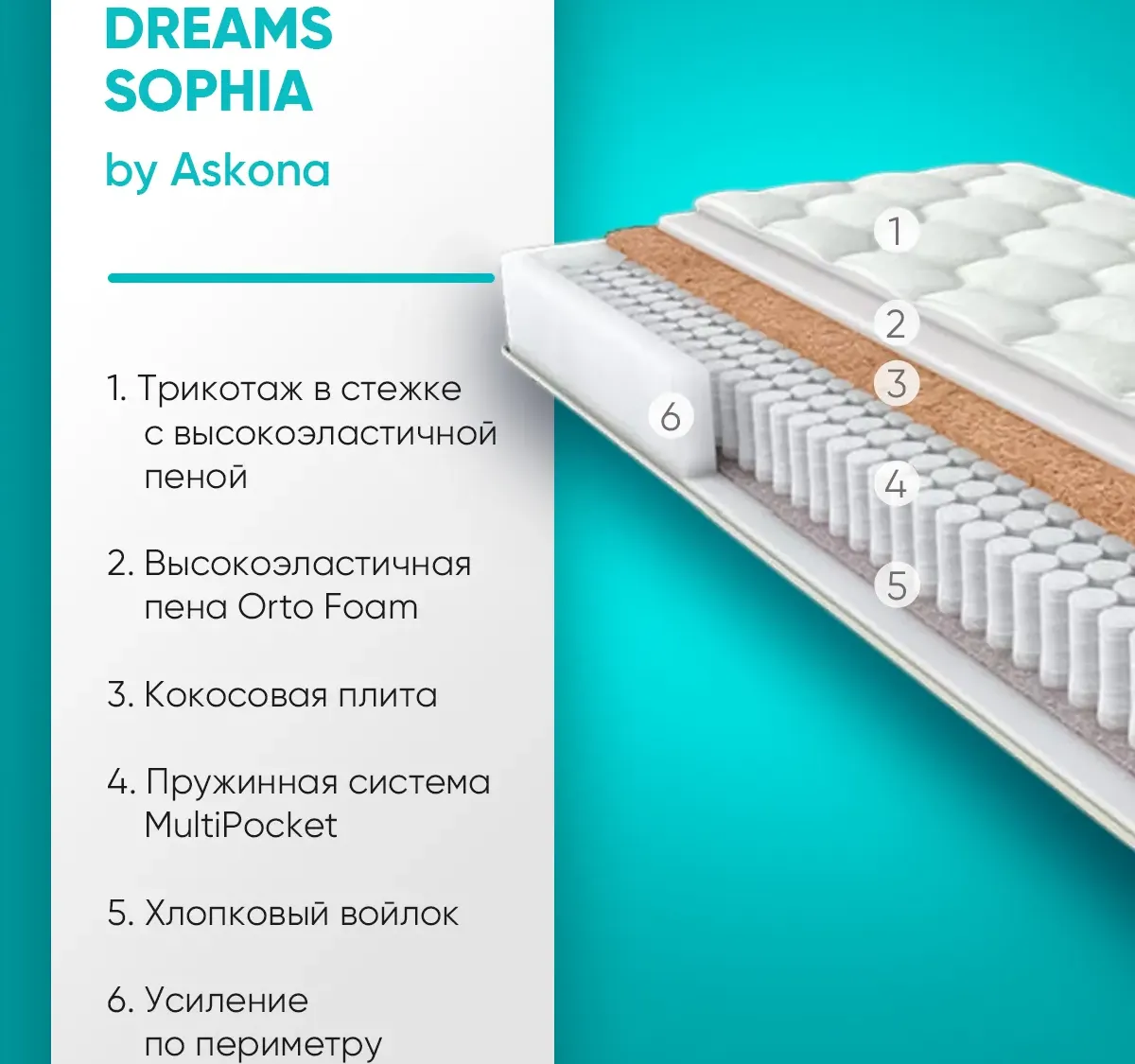 Матрас Askona Enchanted Dreams Sophia 90x200х31, средний/среднежесткий