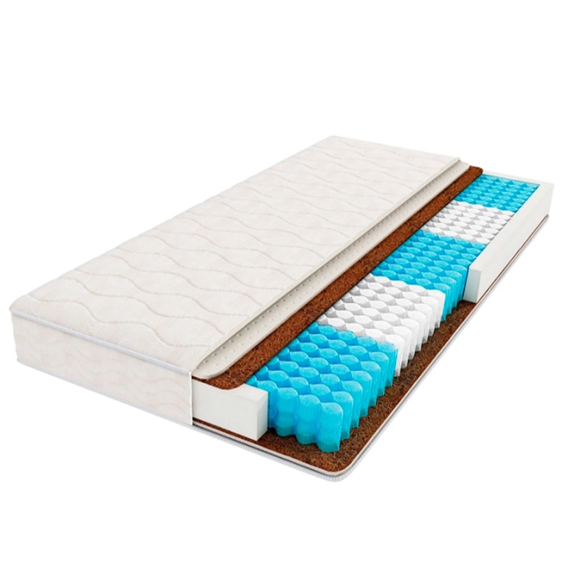 Особый ортопедический эффект обеспечивает блок независимых пружин «Песочные часы Extra», а также применение специальных материалов. Необходимый уровень жёсткости создает плита, сделанная на основе кокосовой койры. Для ощущения мягкости и упругости выше проложен слой латекса.