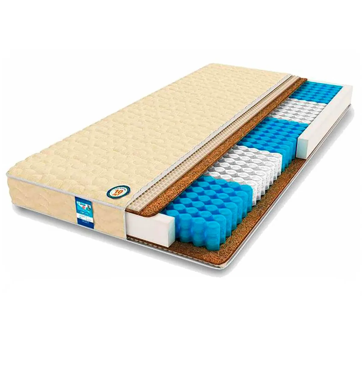 • Кокосовая плита равномерно распределяет нагрузку и придает матрасу необходимую жесткость.