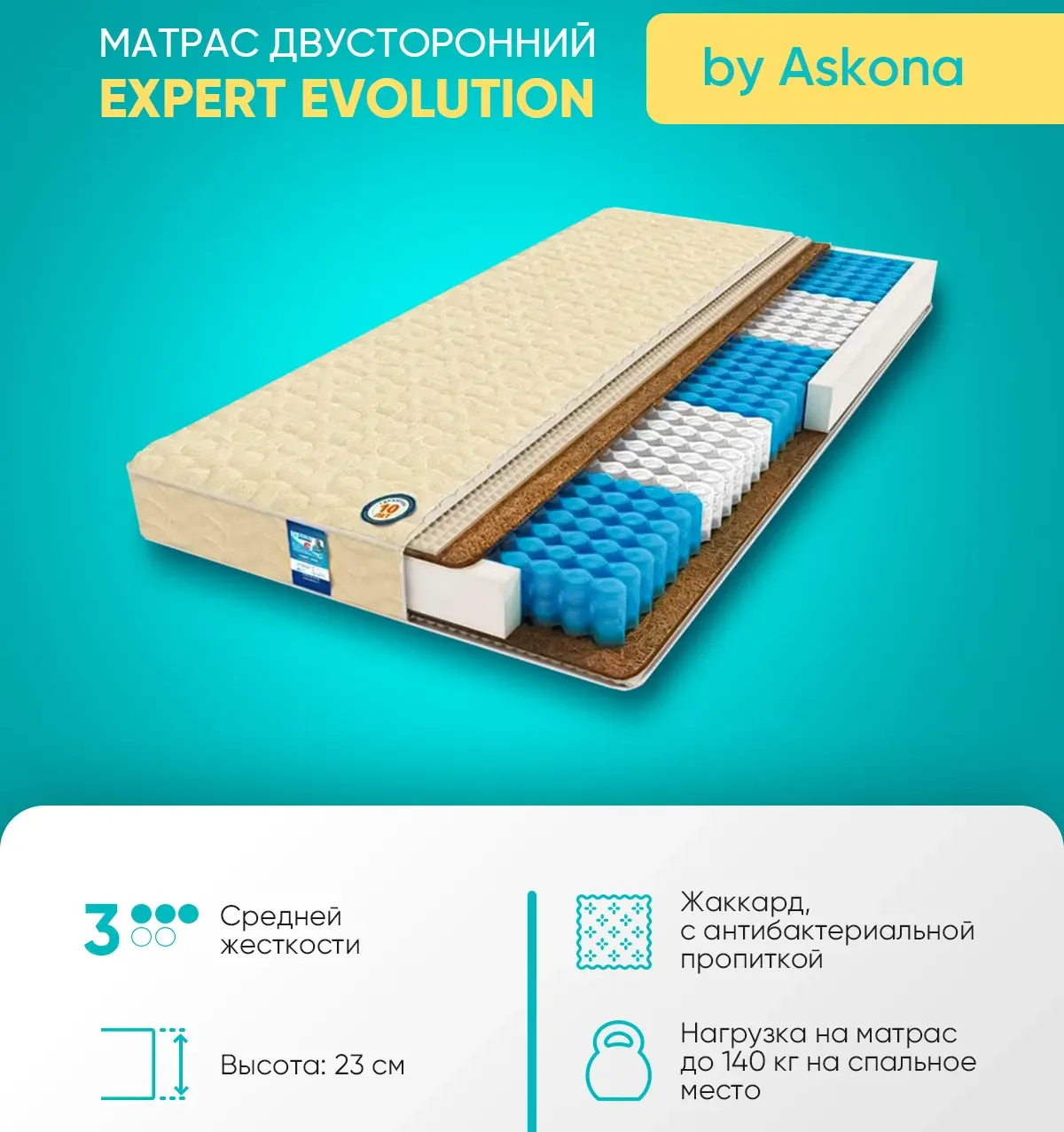 Матрас Askona Expert Evolution 160x200х23, среднежесткий/среднежесткий - купить по выгодной цене | Swed House