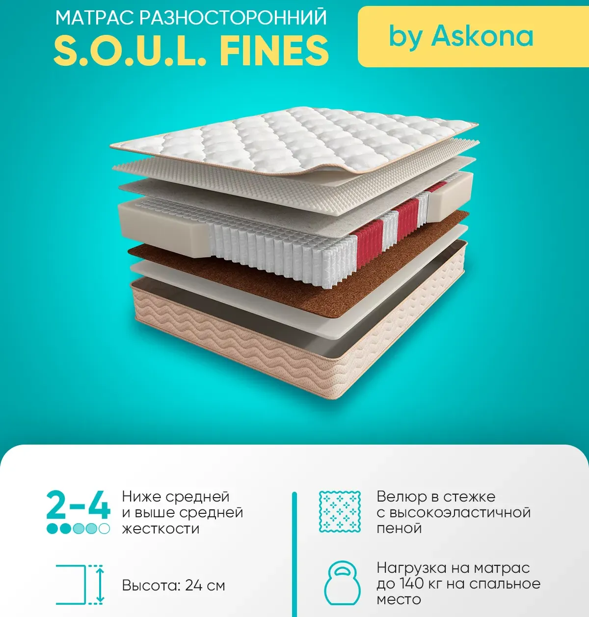 Матрас Askona Soul Fines 90x200х22, средний/жесткий - купить по выгодной цене | Swed House