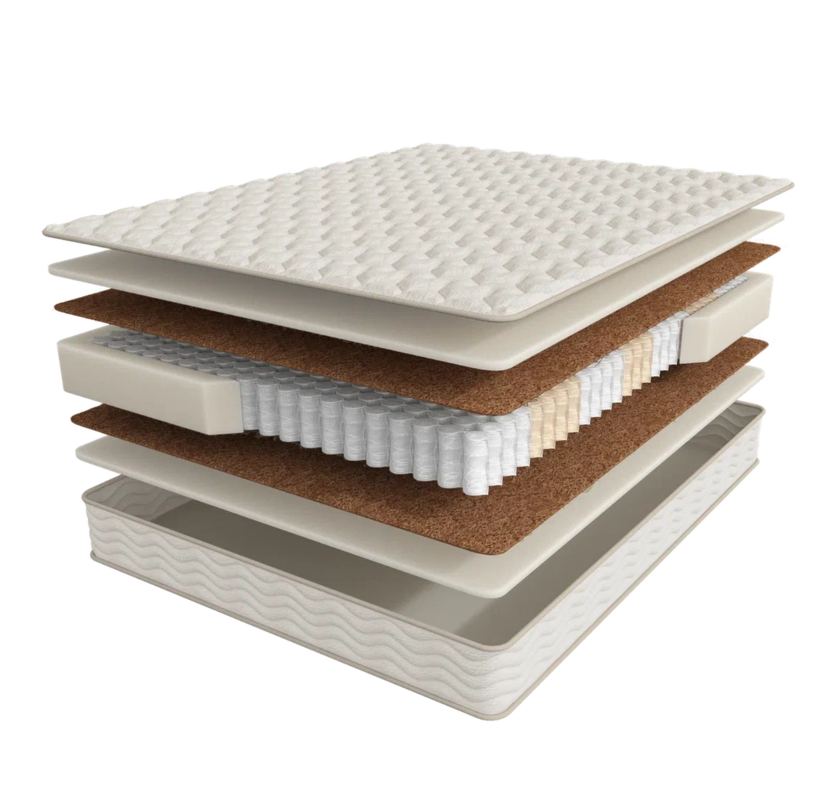 Слой натурального кокоса обеспечивает необходимую упругость и выдерживает высокие нагрузки, сохраняя форму и обеспечивая долговечность изделия. Кокос также обладает антибактериальным эффектом, поддерживая микроклимат матраса и препятствуя развитию неприятных запахов и аллергий.
