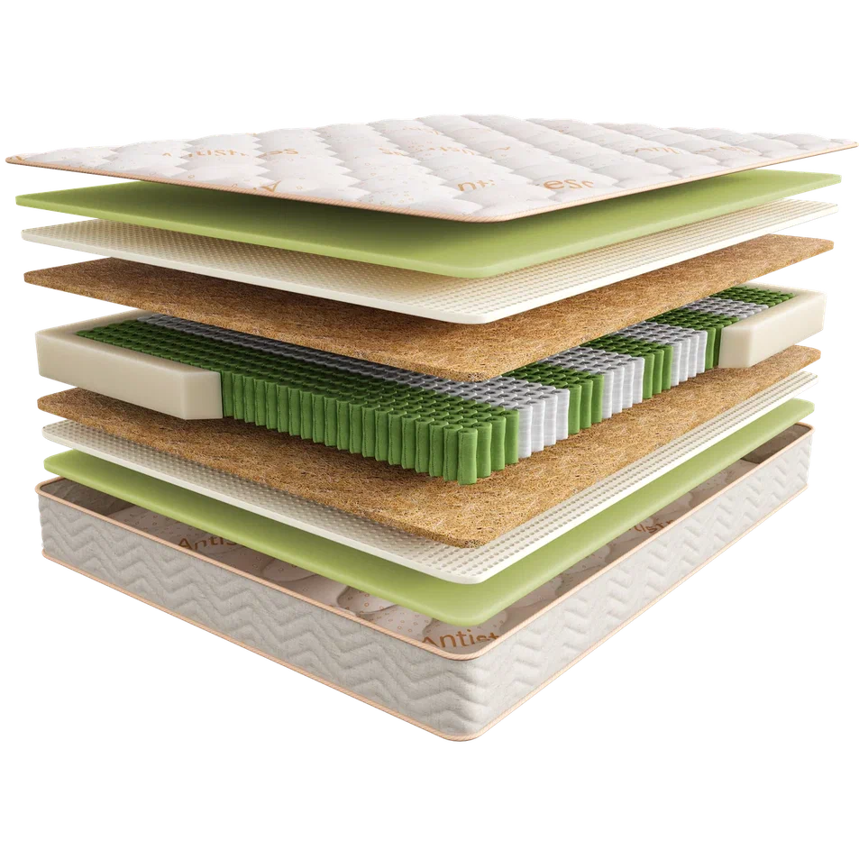 кокосовая койра (2 слоя), упругий Nanolatex (2 слоя), антибактериальная пена с экстрактом эвкалипта (2 слоя) |