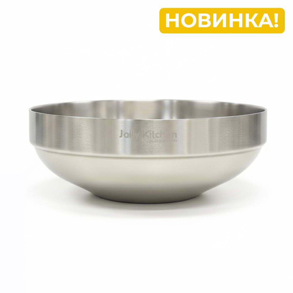 Миска Jolly Kitchen, нержавеющая сталь, двойные стенки, матовая, 21 см