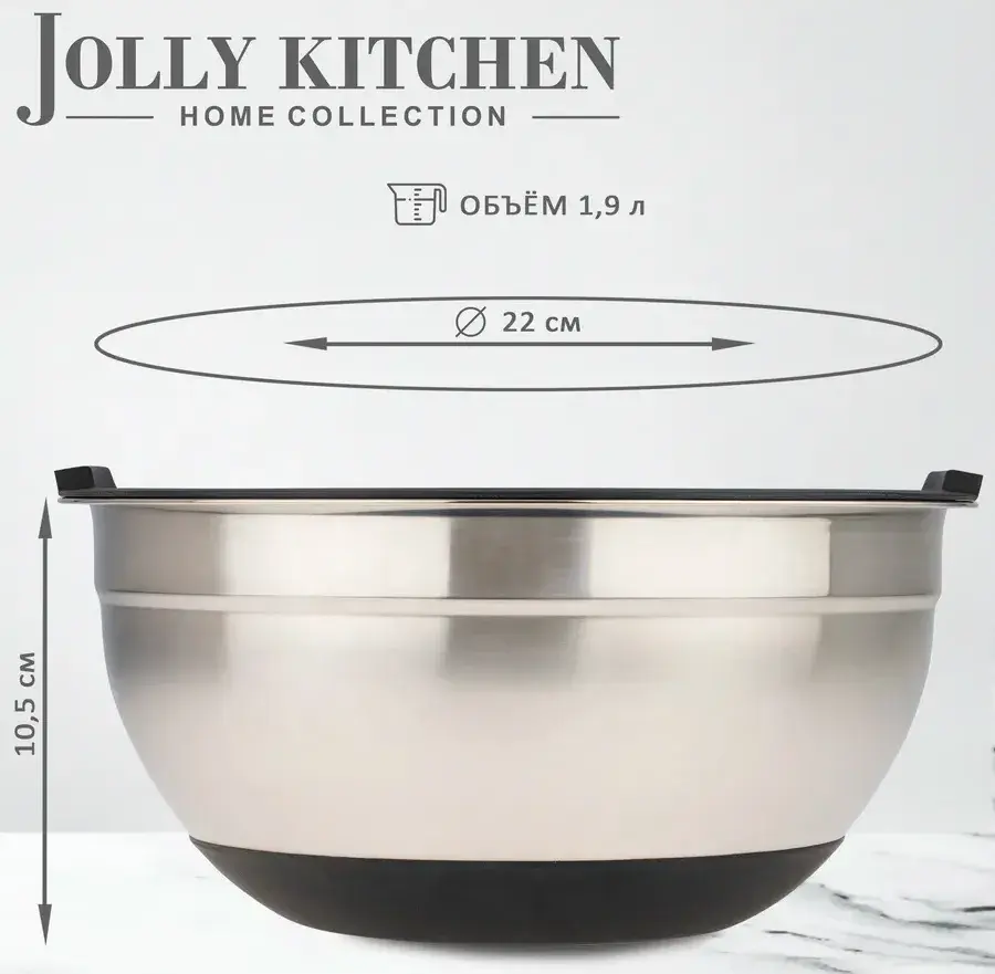 Салатник Jolly Kitchen сочетает в себе стильный дизайн, функциональность и практичность, делая процесс приготовления и хранения пищи более удобным и приятным.