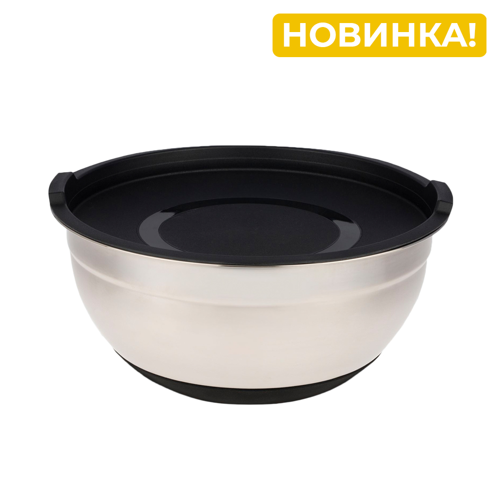 Миска Jolly Kitchen с крышкой, черная, 24 см, нержавеющая сталь 0,35 мм, объем 2,6 л