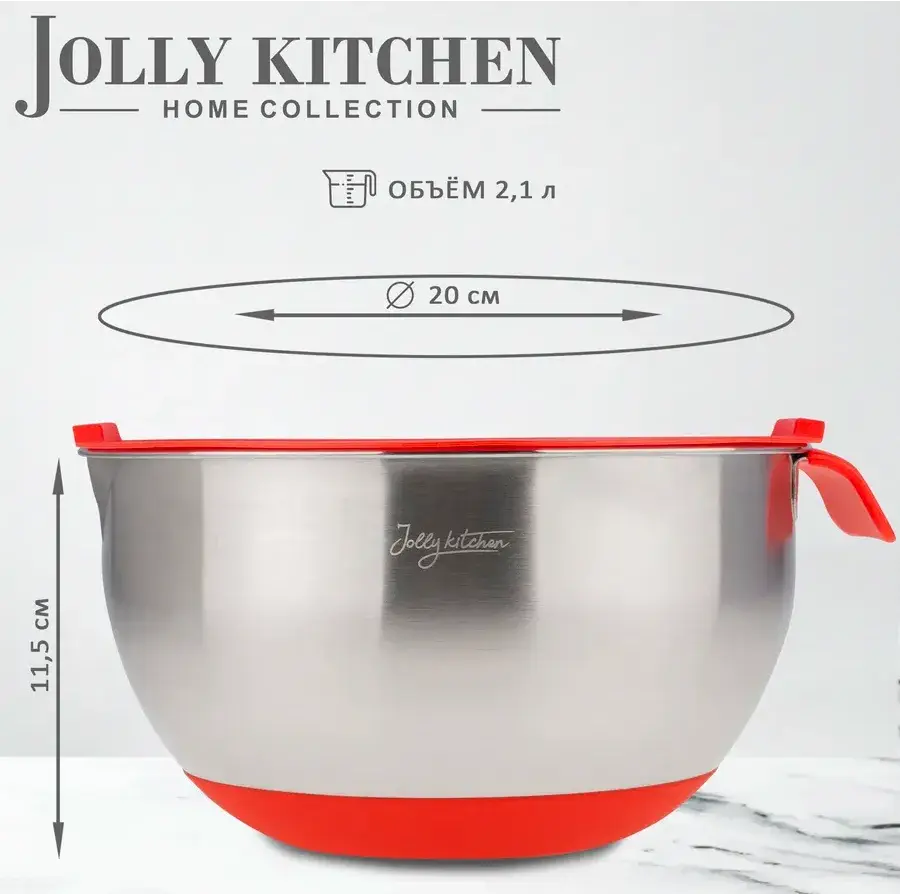 Салатник Jolly Kitchen сочетает в себе стильный дизайн, функциональность и практичность, делая процесс приготовления и хранения пищи более удобным и приятным.