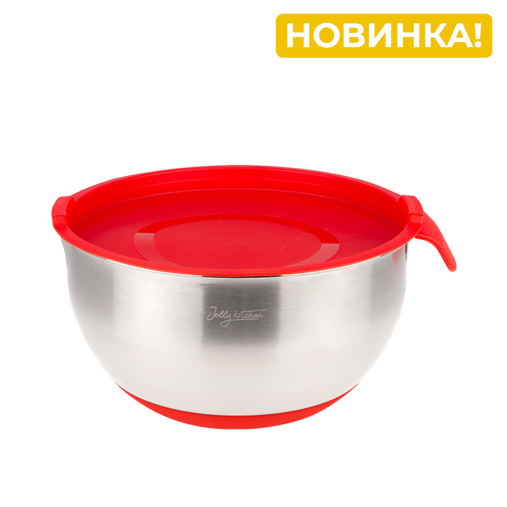Миска Jolly Kitchen с ручкой, красная, 20 см, нержавеющая сталь 0,5 мм, объем 2л