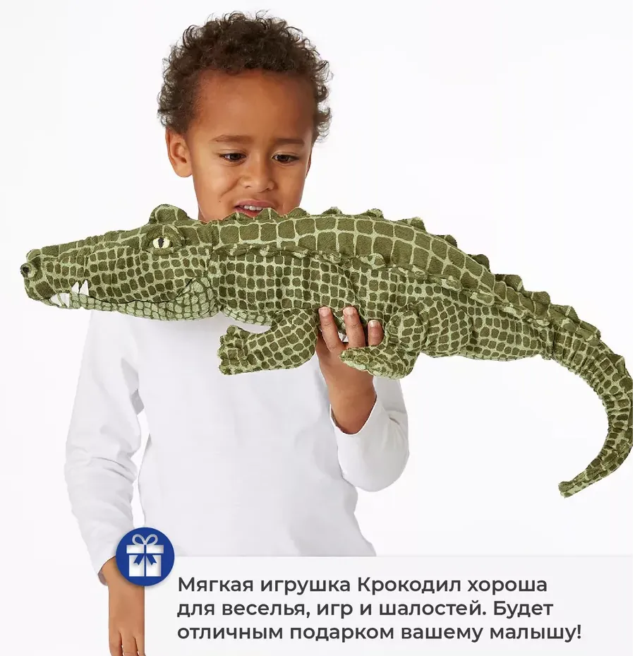 Погрузитесь в мир нежности и уюта вместе с мягкой игрушкой-крокодилом Kryddig от бренда Swed House! Высота игрушки - 80 см, выполнена из качественного полиэстера, который приятен на ощупь и безопасен для здоровья. Идеальный компаньон детям и взрослым станет стильным дополнением интерьера, создаст атмосферу тепла и комфорта. Подходит для подарка близким людям. Удобная стирка сохраняет внешний вид изделия надолго. Приятного общения с новым пушистым другом!