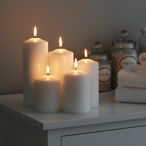 арт. 02.23.1212 Набор из 5 свечей разного размера из белого парафина