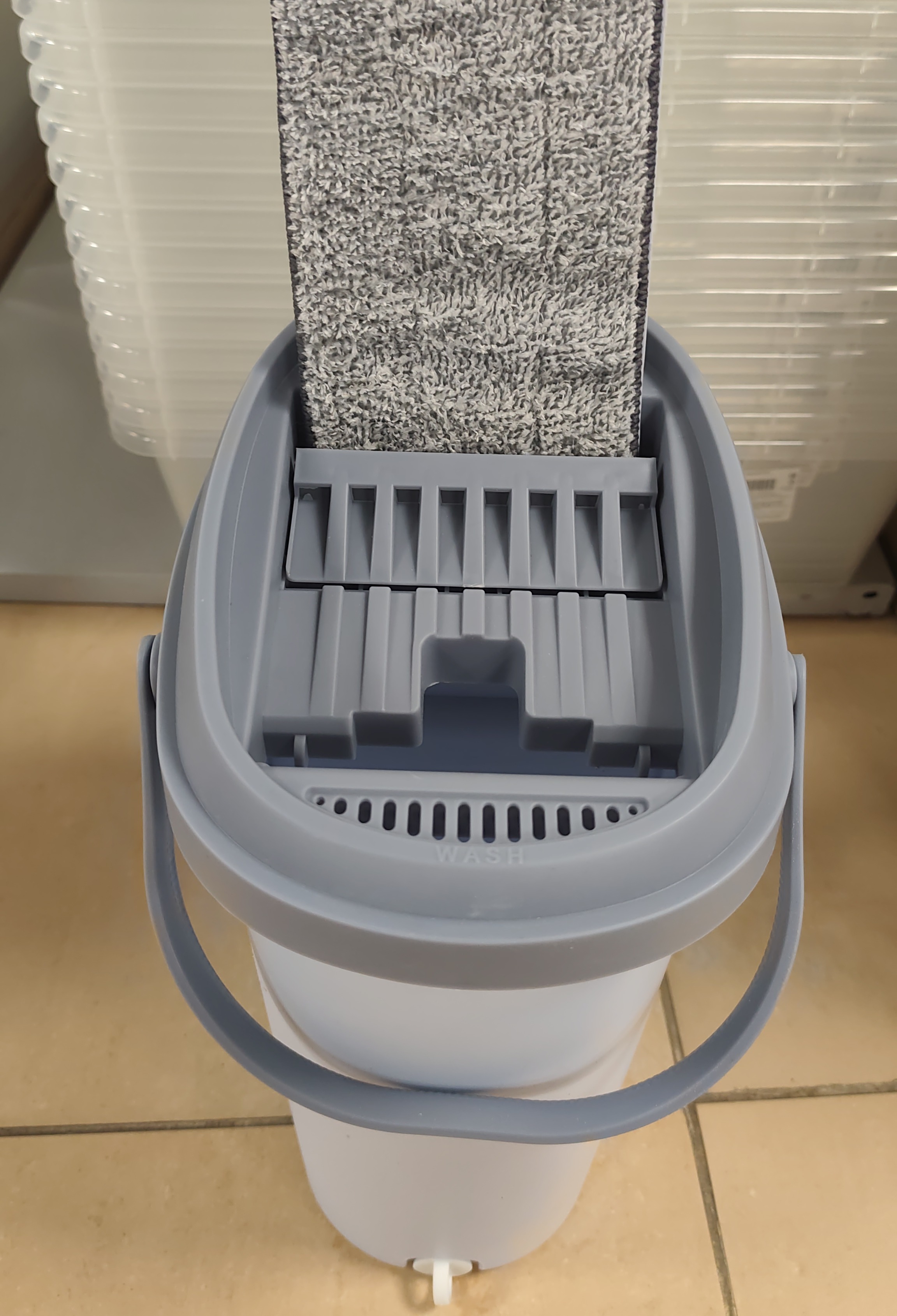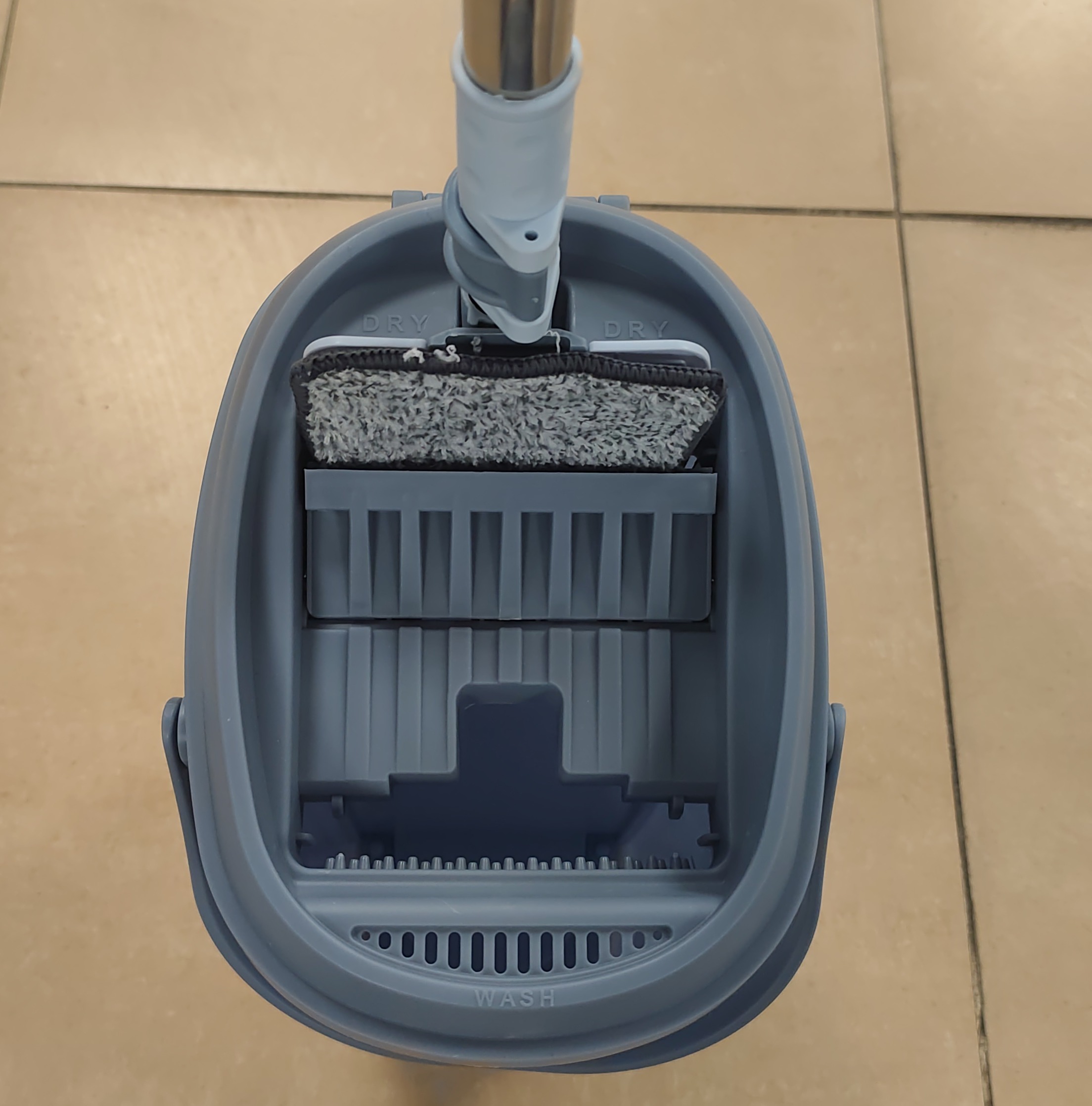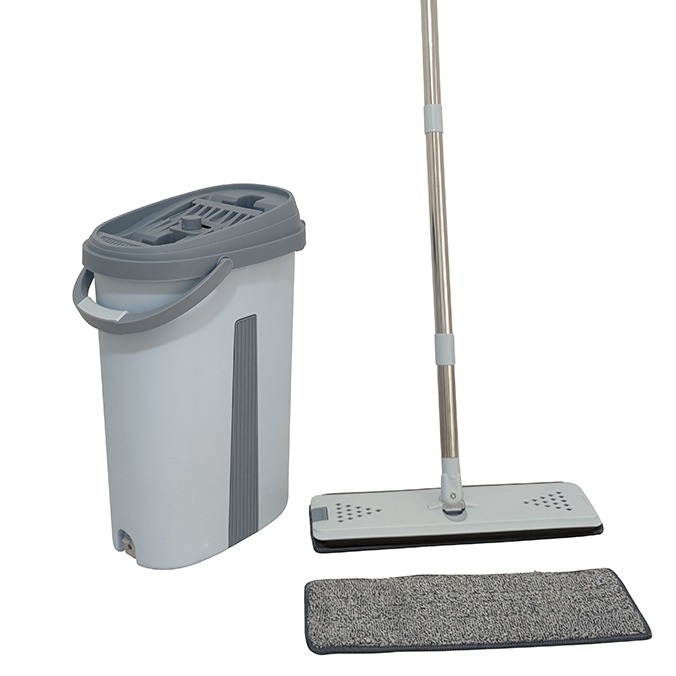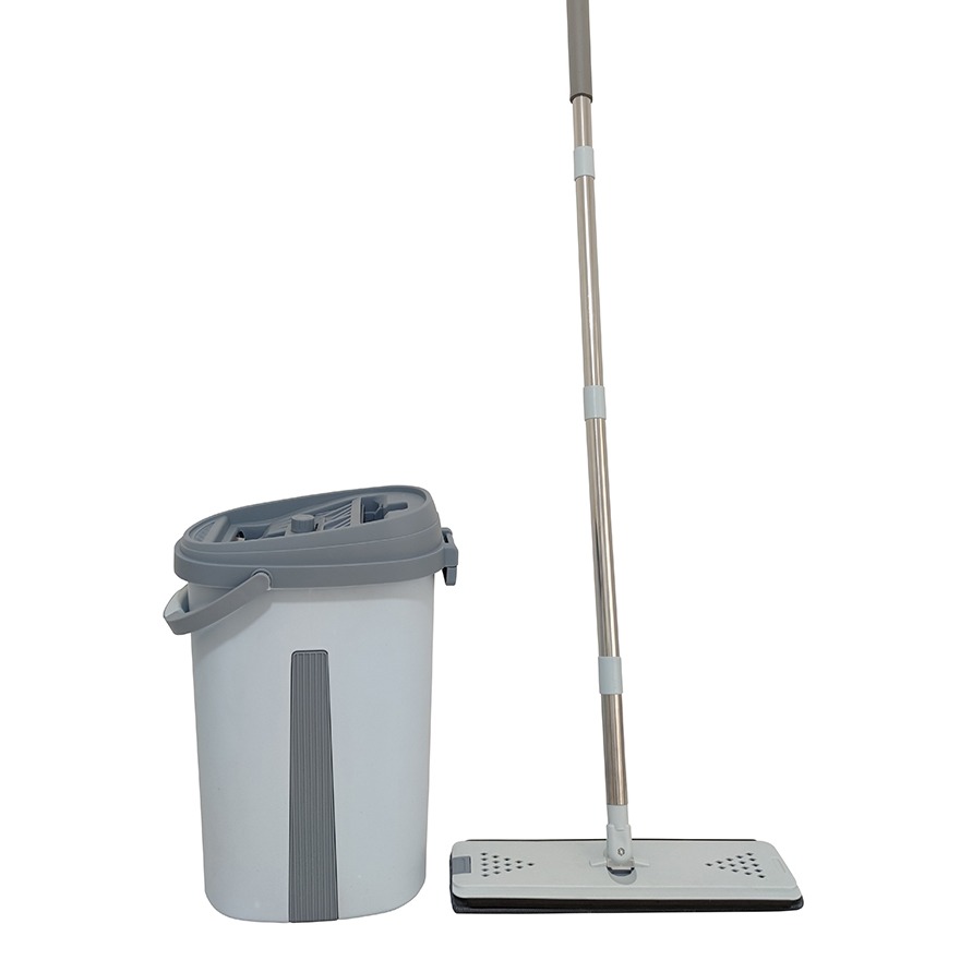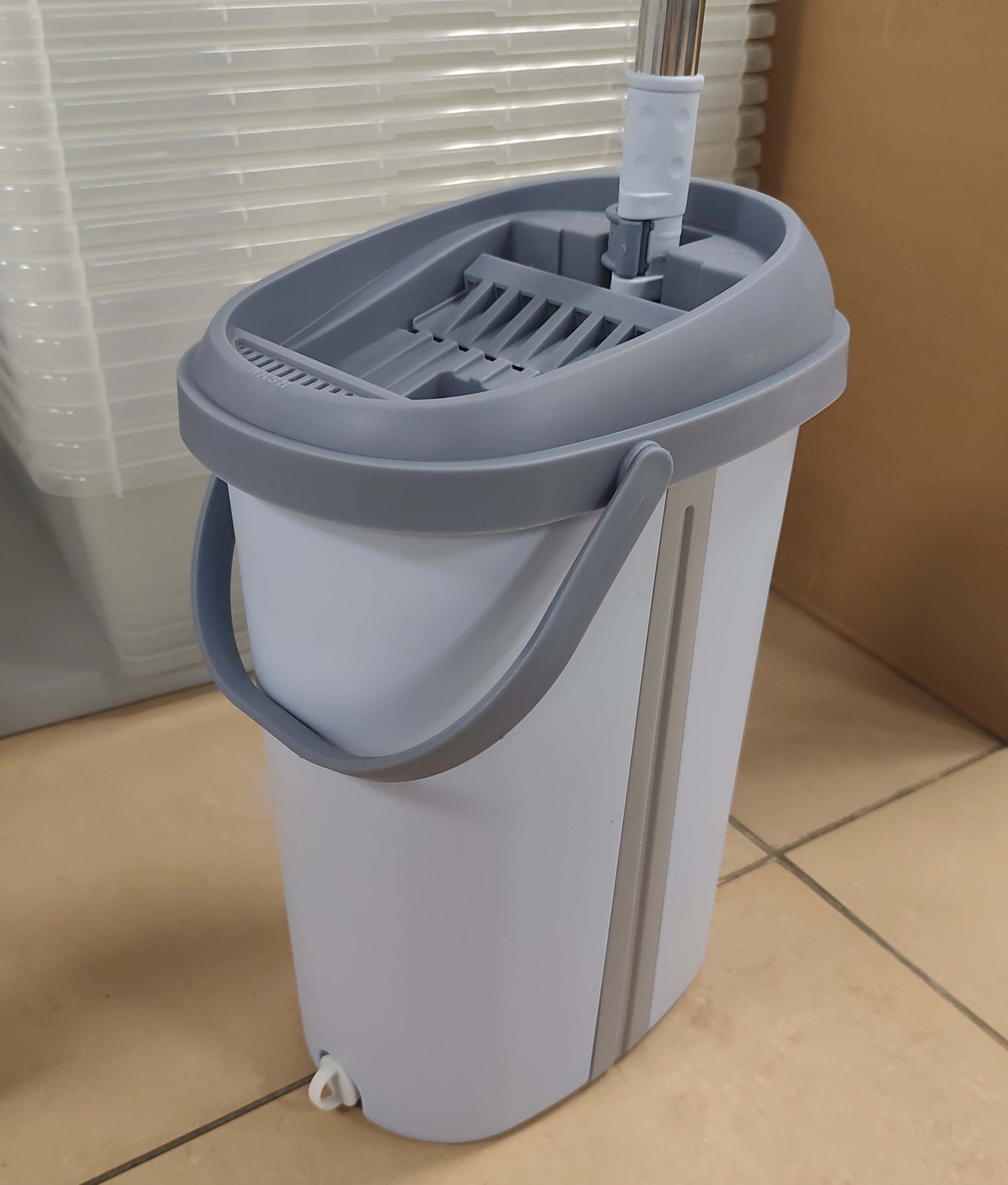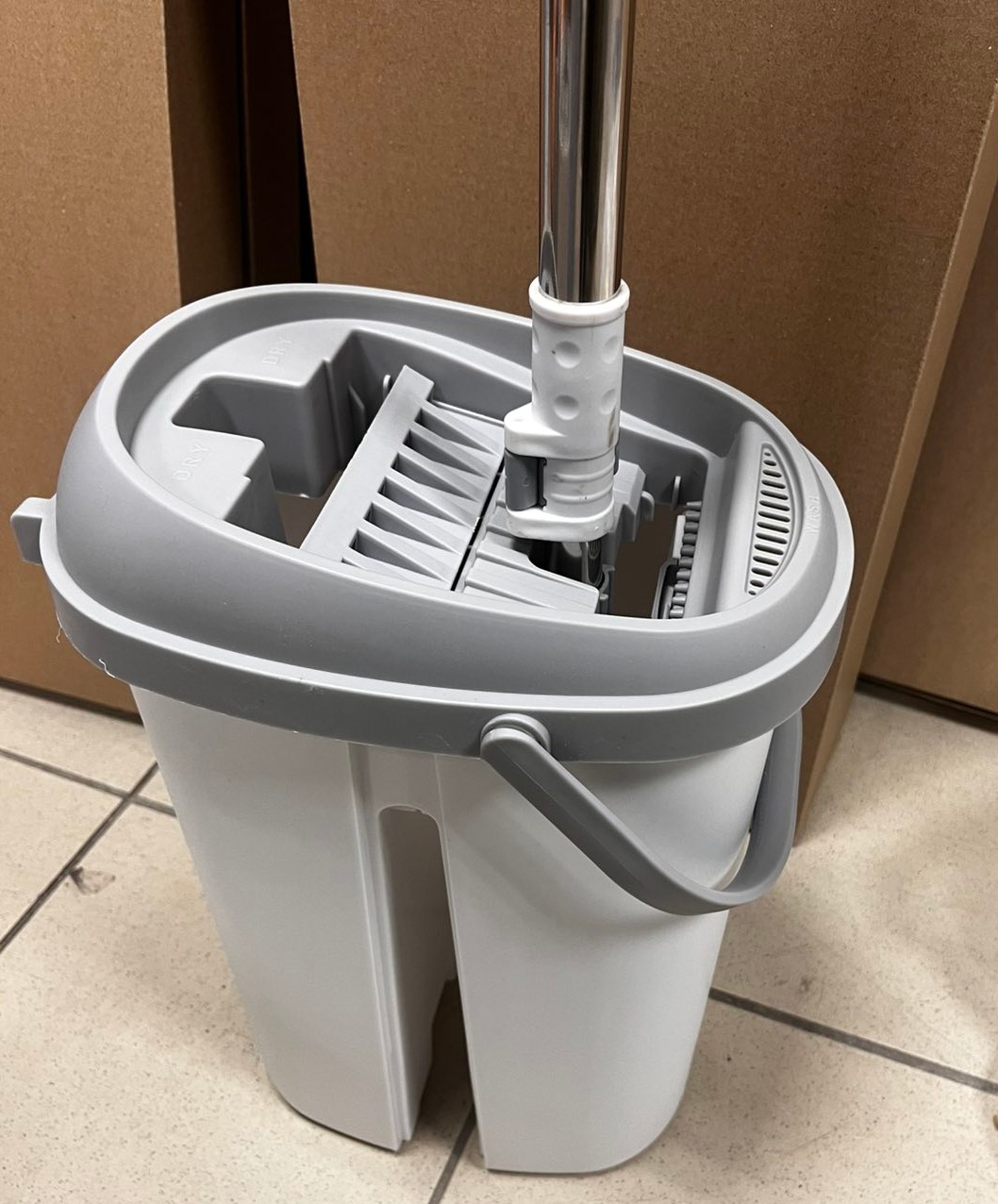 Набор для уборки (Швабра для мытья полов с телескопической ручкой, насадка из микрофибры, ведро с отжимом), материалы: полипропилен, ручка - нержавеющая сталь.