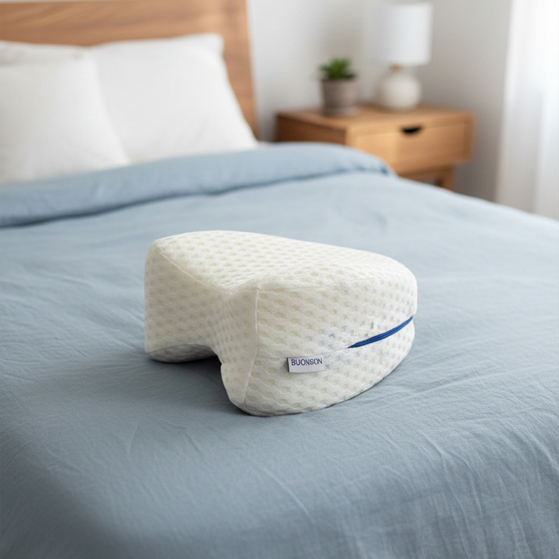 - арт. 53.01.8656 ортопедическая подушка Gullan для ног с анатомическим эффектом из плотного пенополиуретана, поддерживающего во время сна ваше тело. Размер - 26х23х12 см. Чехол - хлопок и полиэстер. Подушка - плотный пенополиуретан с отверстиями для вентиляции.
