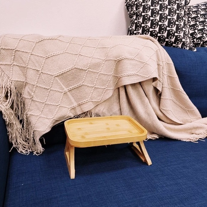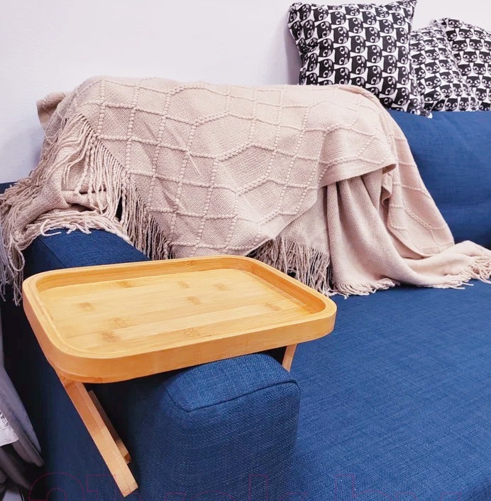 Бамбуковый поднос для подлокотника — это стильный и функциональный аксессуар, который станет идеальным дополнением к вашему интерьеру и значительно улучшит вашу повседневную жизнь. Изготовленный из прочного бамбука, этот столик обеспечивает устойчивую и надежную платформу для различных задач. Данная деревянная подставка крепится к подлокотнику дивана или кресла двумя прочными зажимами. Зажимы фиксируются стальными пружинами, благодаря этому подставка сидит прочно, не соскользнет и не упадет с подлокотника. Можно ставить кружку, чашку, бокал с вином, стакан блюдце, тарелку с едой, телефон, пульт от телевизора, ароматические свечи — все, что угодно — и не опасаться, что посуда соскользнет и запачкает мебель.