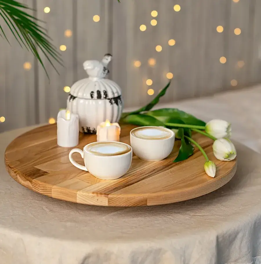 Поднос, он же поворотный столик или тортовница, имеет плавный поворот на 360 градусов, что обеспечит доступ ко всему содержимому на нем. Благодаря размерам и функционалу подноса, его можно использовать многогранно в любом месте: как поднос для завтрака, поднос для подачи блюд или сервировки чая, кофе, закусок, воды и напитков, как органайзер для хранения, как прекрасный декоративный элемент.