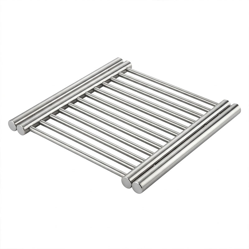Подставка имеет две формы - в собранном виде 28,5х28х2 см для одного блюда. И в раздвинутом виде размером 49х28х2 см - подойдет для двух блюд или для одного большого.