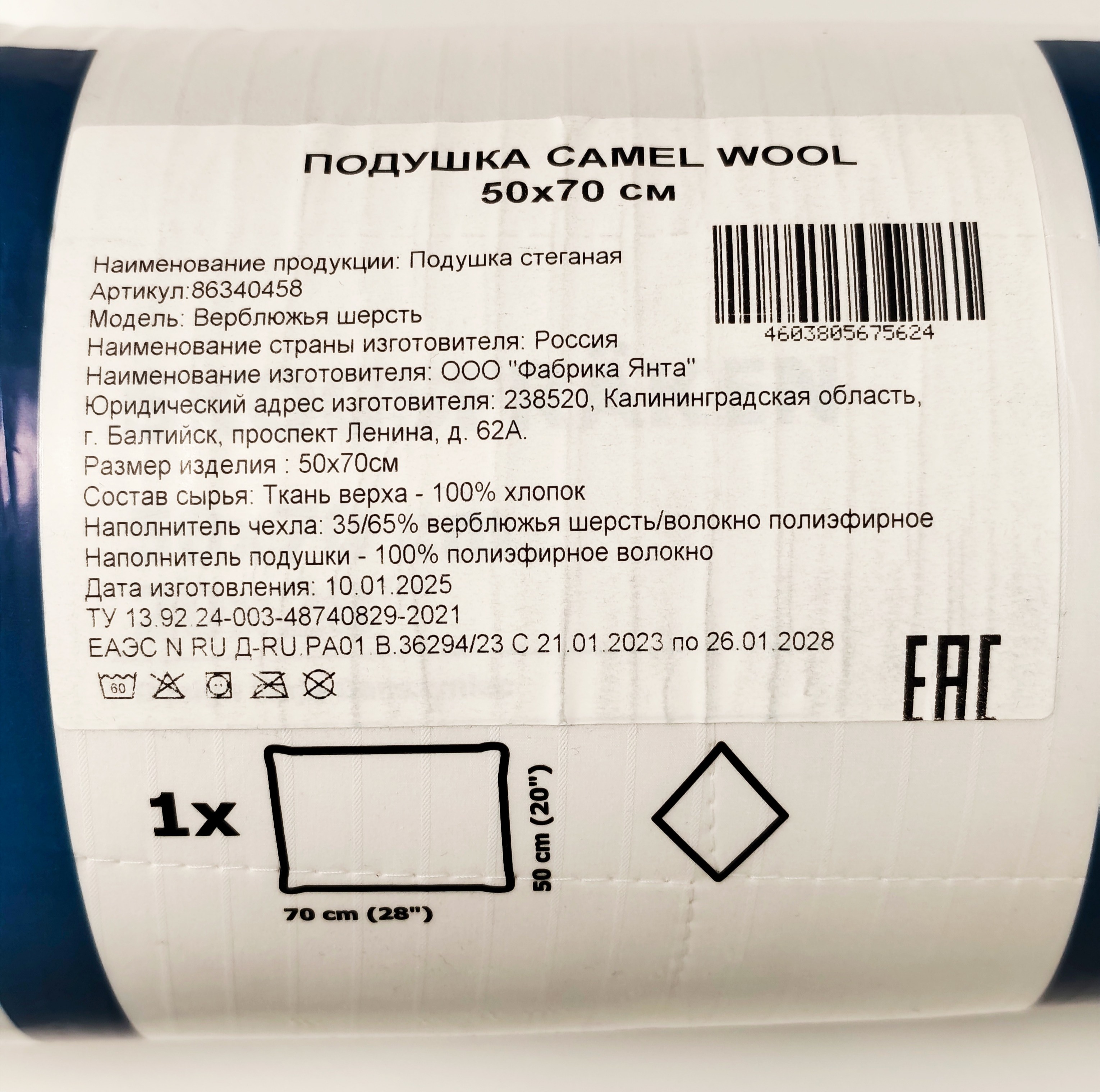 Наполнитель чехла: 35 верблюжья шерсть и 65% волокно полиэфирное.