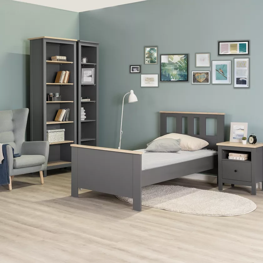 САГА кровать одинарная 90х200— дизайн и функциональность в каждой детали! Серия мебели САГА вдохновлена популярной серией HEMNES в традиционном стиле от IKEA, и станет идеальным дополнением вашей квартиры. Односпальная кровать САГА — это универсальное и практичное решение, идеально подходящее как для подростка, так и для взрослого. Благодаря своим компактным размерам, кровать легко размещается даже в небольших помещениях, что делает ее отличным выбором для малогабаритных комнат или уютных спален. Она оснащена ортопедическим реечным дном, которое обеспечивает оптимальную поддержку позвоночника во время сна и способно выдерживать нагрузку до 140 килограммов, гарантируя комфорт и долговечность. Кровать выполнена в классическом стиле, который гармонично вписывается в разнообразные дизайнерские решения. Опорные элементы изготовлены из прочного МДФ, что обеспечивает устойчивость и надежность конструкции на долгие годы. САГА — это идеальное сочетание комфорта, прочности и эстетики, которое превратит ваш сон в настоящее удовольствие. Она станет не только функциональным, но и стильным элементом вашей спальни., подчеркивающим ваш вкус и заботу о здоровье.