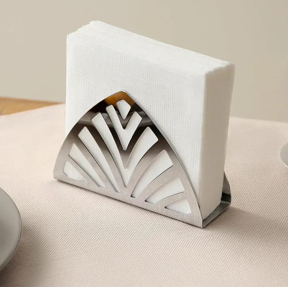 Салфетница имеет стильный и современный дизайн, который легко впишется в любой интерьер кухни. Хромированное покрытие придает изделию блеск и защищает от отпечатков пальцев.