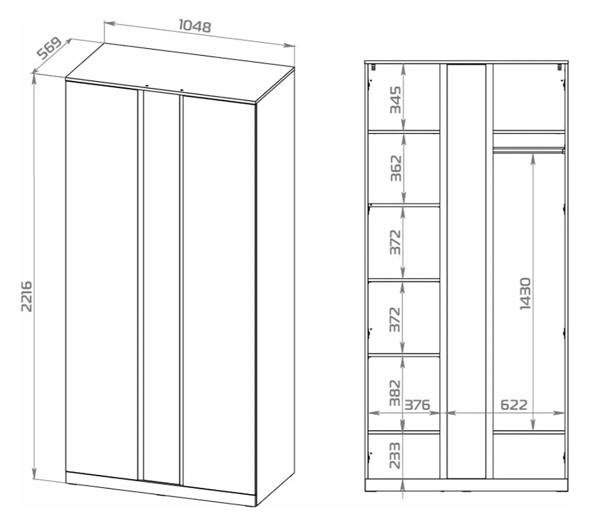 - Эффективное хранение: Внутреннее пространство включает вместительные полки и отделение со штангой.