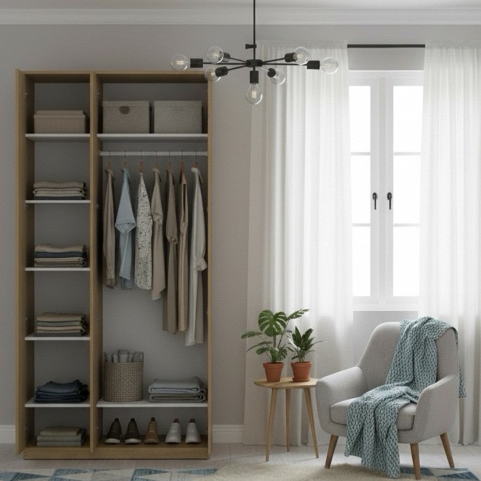 Шкаф Варма Стор 105 в цвете «Дуб скандинавский» сочетает визуальный комфорт и продуманную конструкцию.